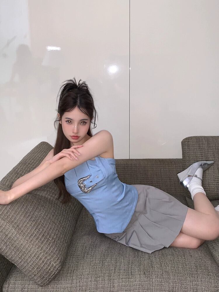 ピュアディザイア ブルー 小さめ キャミソール レディース 夏 イレギュラーウエスト 着痩せデザイン感 ショートトップ アウター サマー 夏物 bstraw10245955645 | beaute25