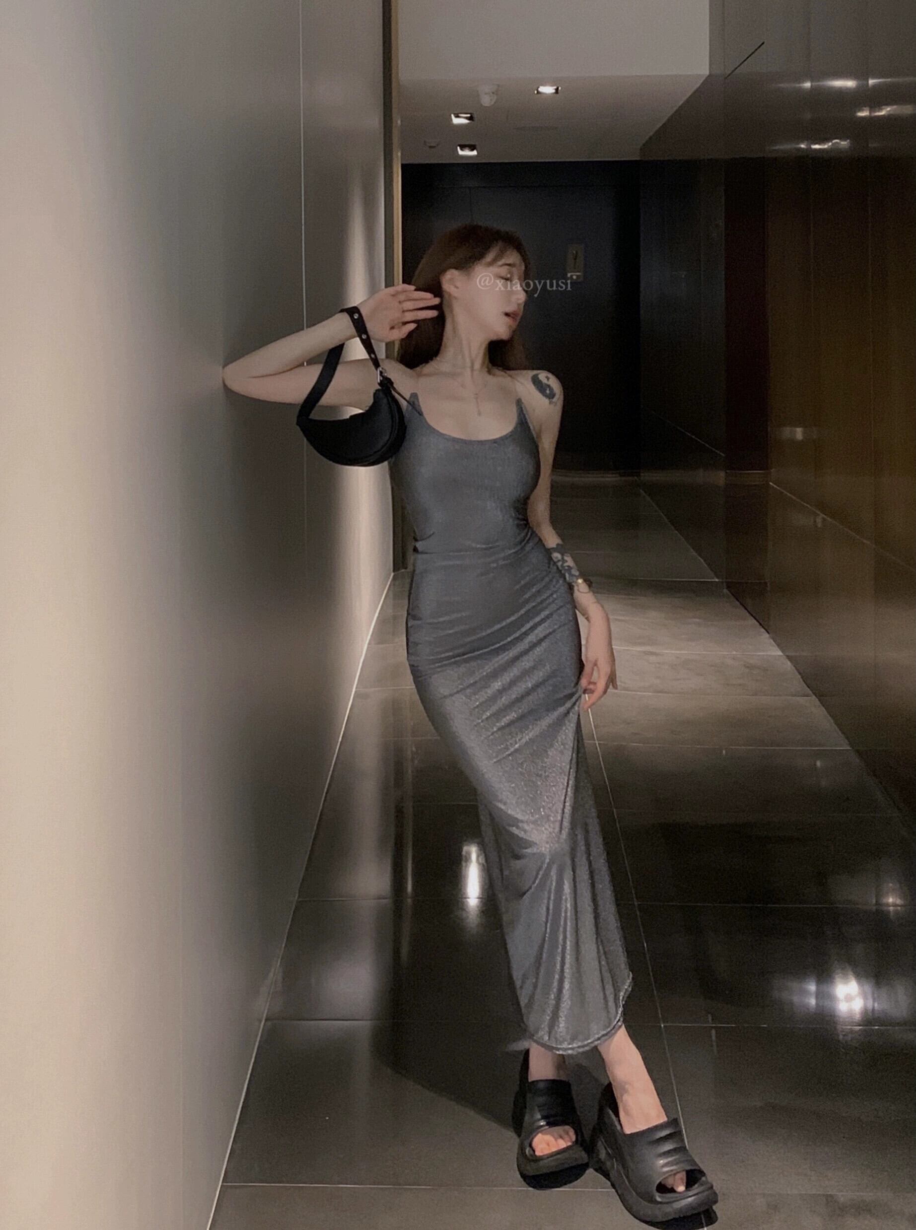 透明な目に見えないショルダーストラップぶら下げネックスリングドレス女性の夏のタイトウエストロングスカートセクシーなスリムスカート サマー 夏物 bstraw19355158313 | beaute25