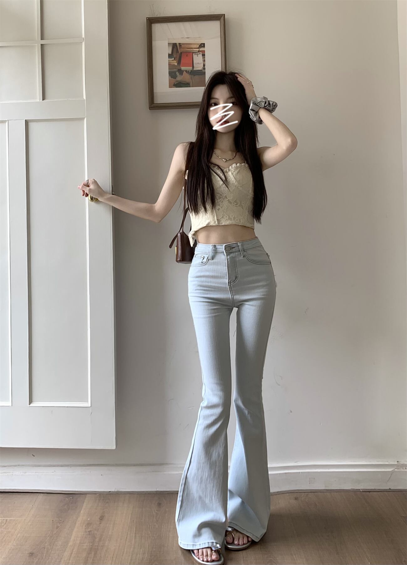 フィーリングハートローエッジライトブルージーンズ女性の夏小さな背の高いウエストパンツストレートチューブマイクロフレアパンツ レッド サマー 夏物 bstraw22512475176 | beaute25