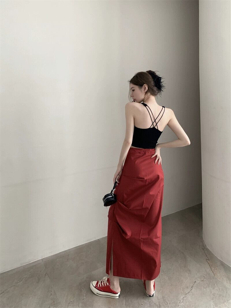 アメリカンレトロツーリングスカートレディース2023夏新作スカートハイウエストカジュアル小さなスリットロングスカート ハイウェスト サマー 夏物 bstraw71009988742 | beaute25