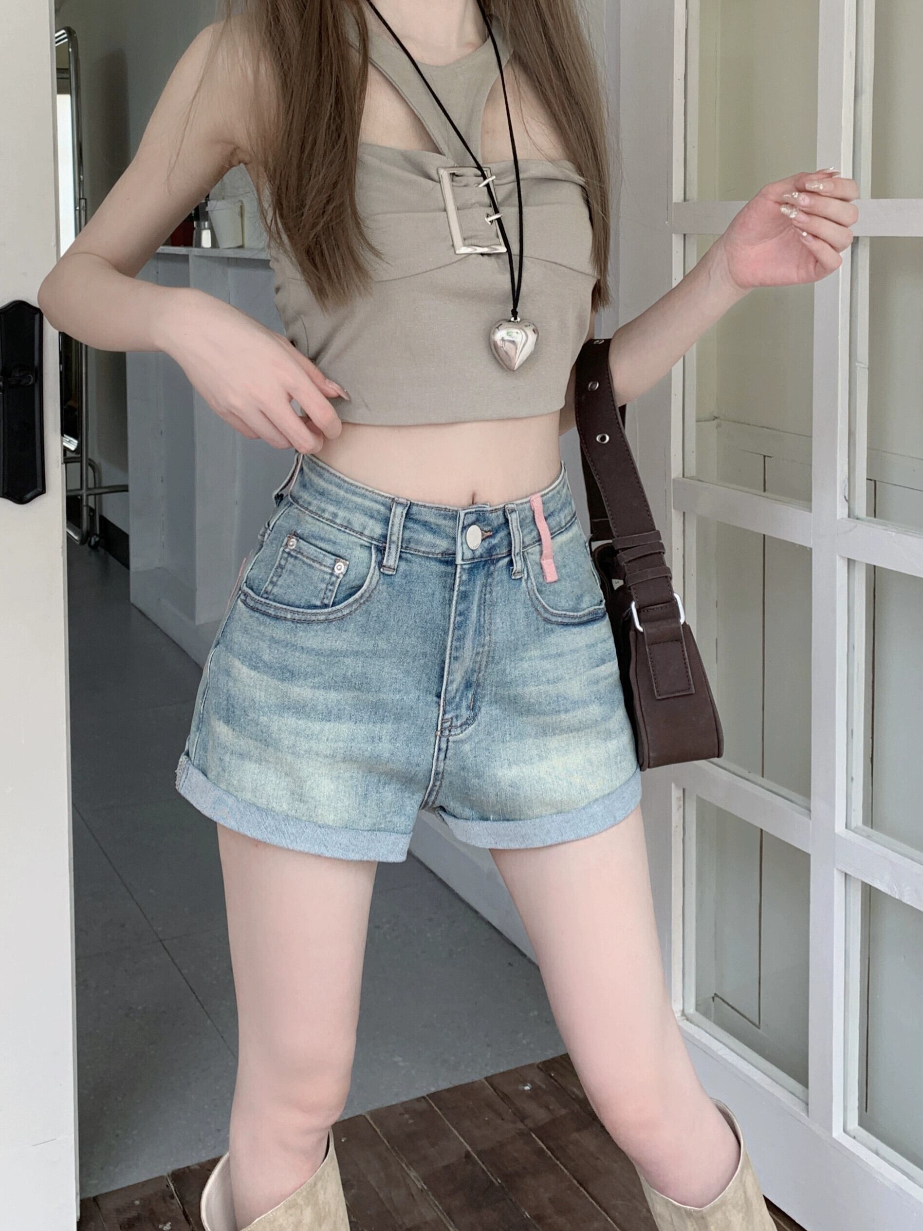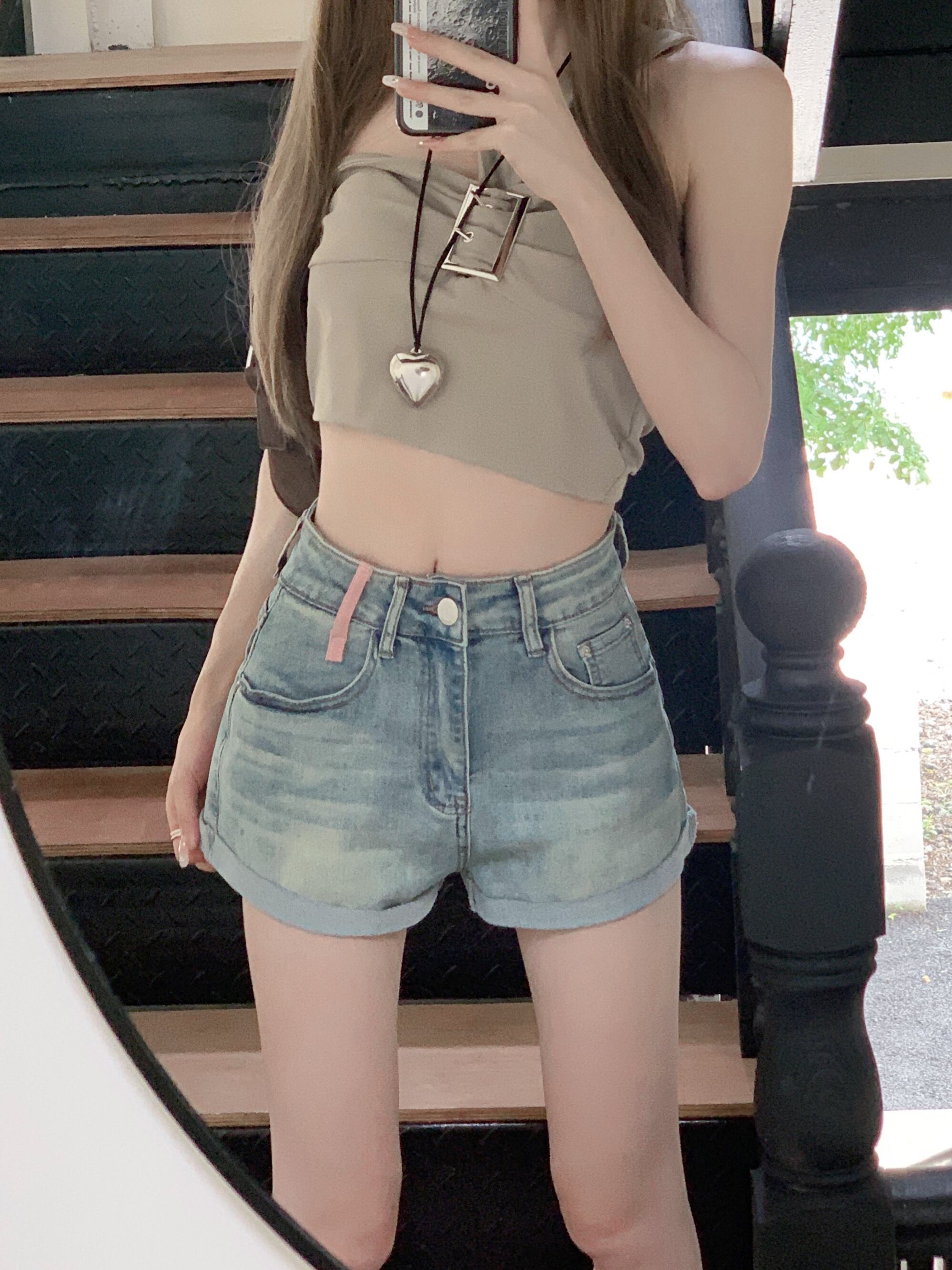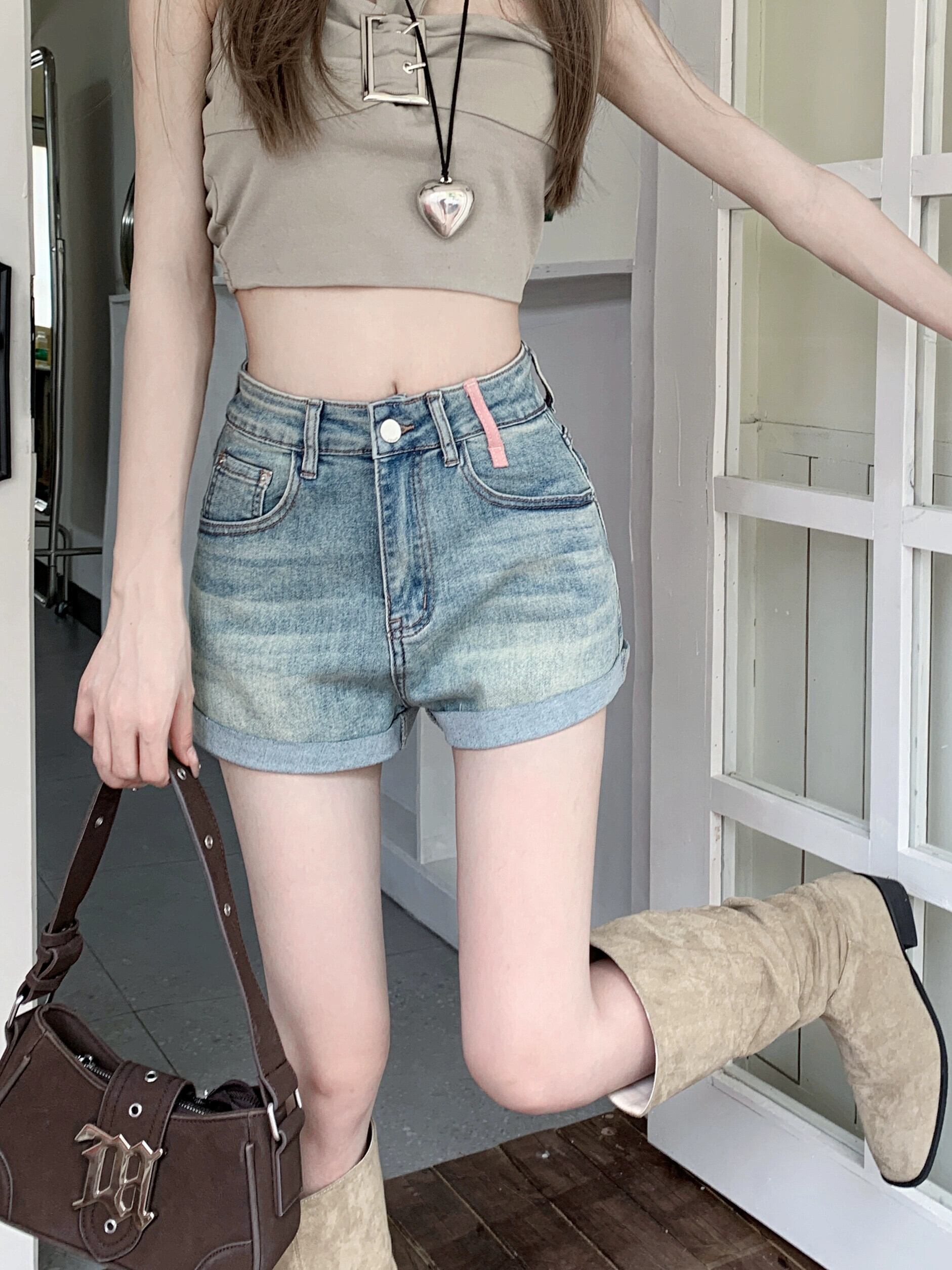 アメリカンレトロカーリーデニムショートパンツ女性の夏のハイウエスト薄いパンツオールマッチ小さなワイドレッグパンツ ハイウェスト サマー 夏物 ショーツ ブルマー bstraw58264080761 | beaute25