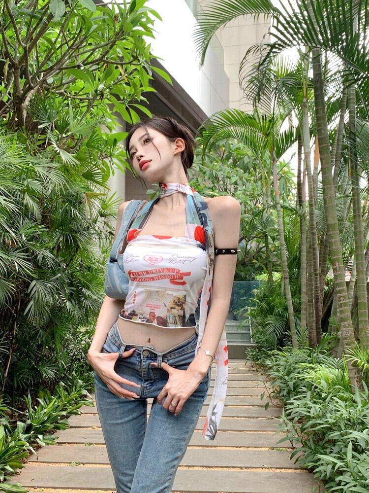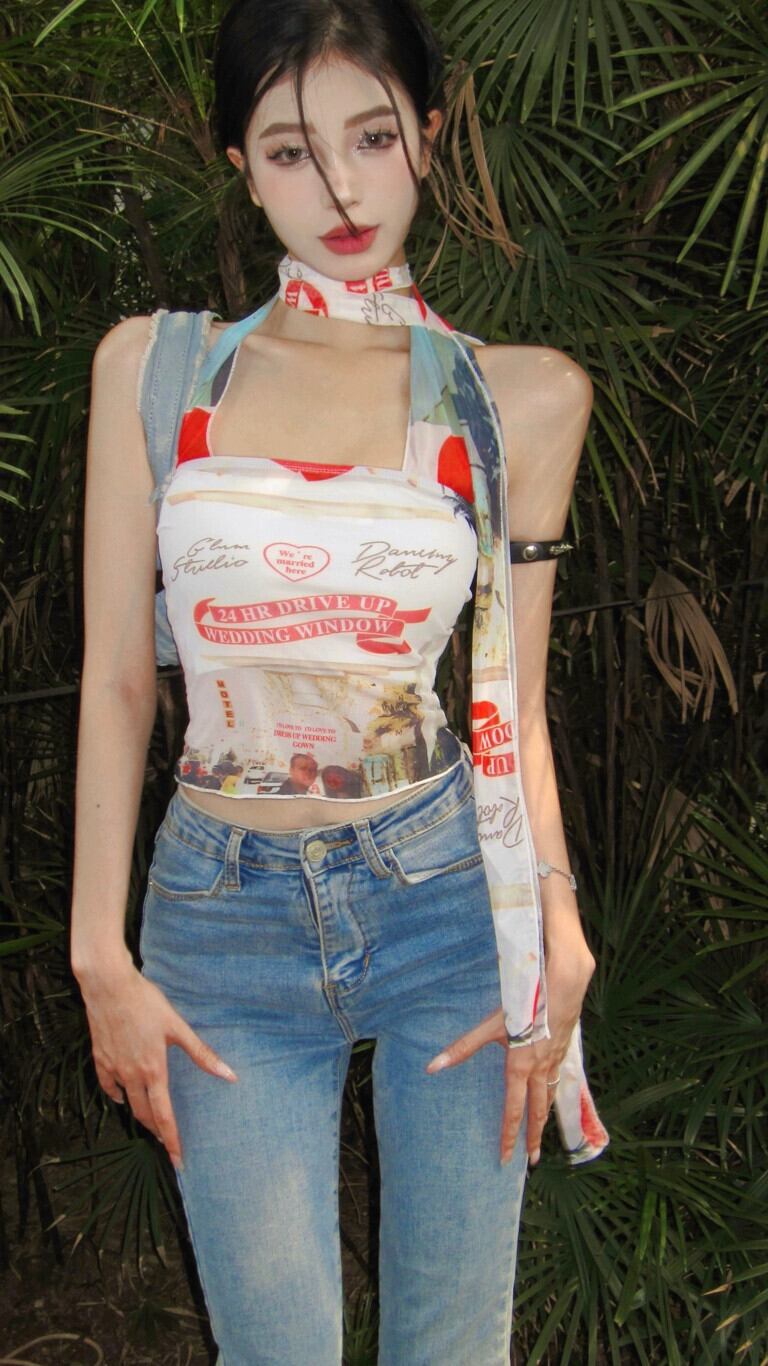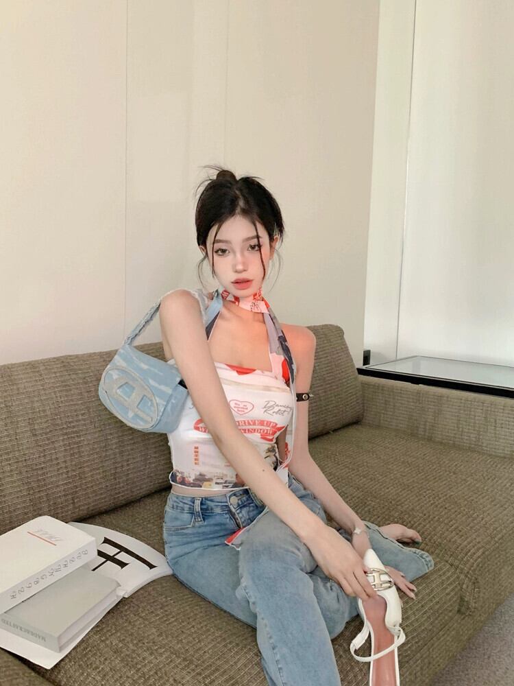 スイート スパイス ガール アメリカン メッシュ ホルターネック キャミソール 夏美しいバック Y2K プリント ショートセクション インナー トップ アウター 大人ガーリー スウィート キュート カジュアル サマー 夏物 bstraw27458246161 | beaute25