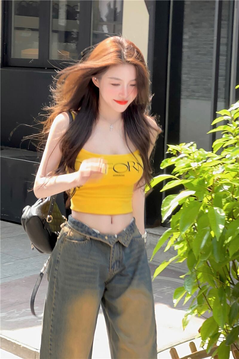 甘い女の子アメリカンスタイルキャミソール女性の夏の純粋な欲望黄色ノースリーブセクシーなタイトフィットと薄いインナージャケットアウター 大人ガーリー スウィート キュート カジュアル サマー 夏物 ピュア bstraw65451838343 | beaute25