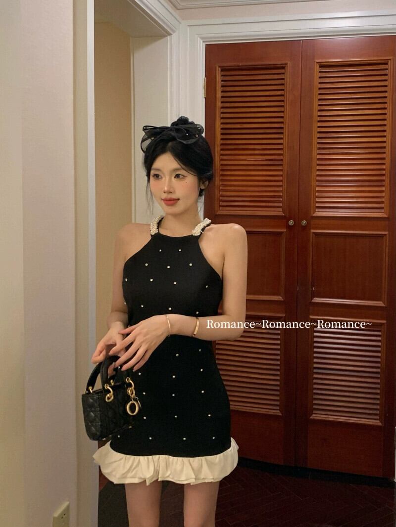 黒ホルターネックスリングドレス女性の夏スウィートスパイスガールストラップレススカートウエストフリルエッジ小さなショートスカート ブラック 大人ガーリー キュート カジュアル サマー 夏物 bstraw55611264343 | beaute25