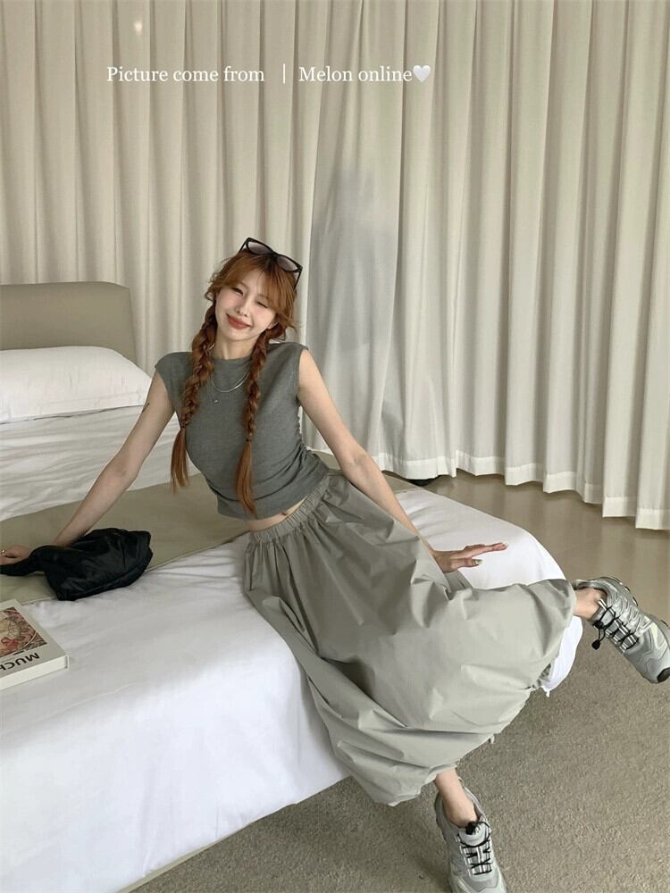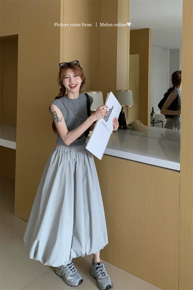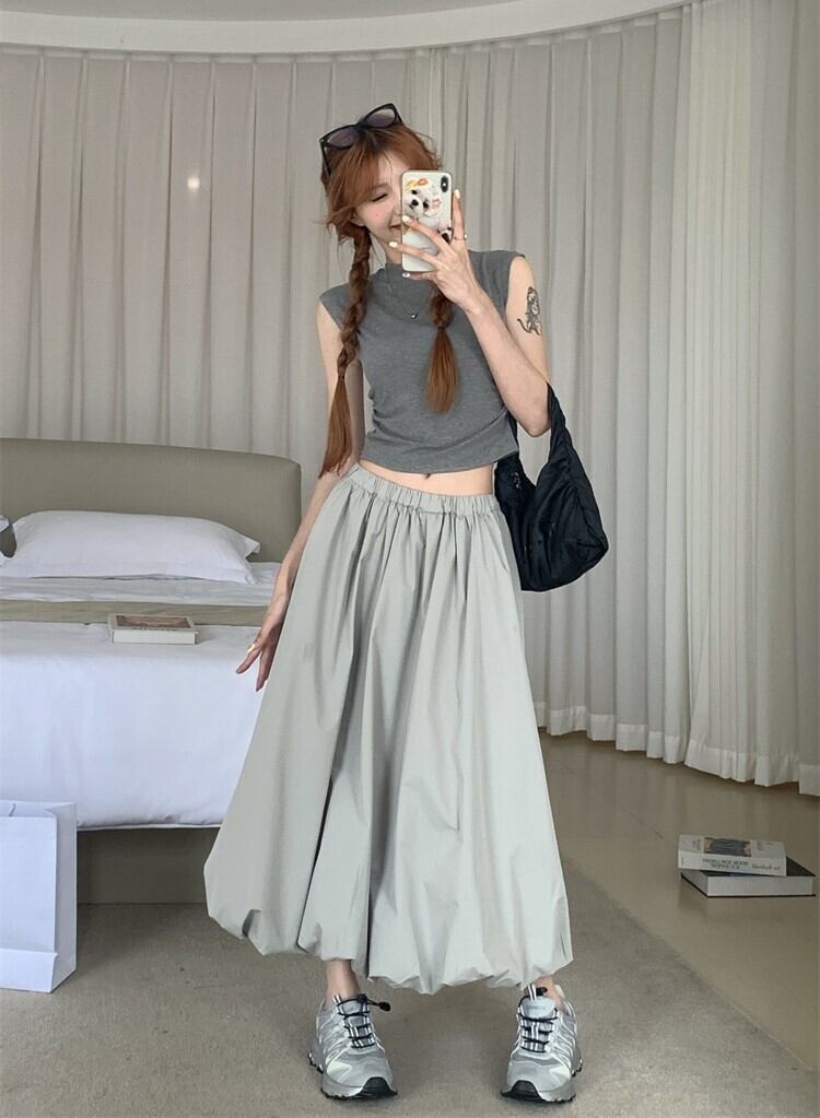 グレーゴムウエスト A ラインスカートレディース夏ハーフスカートロングスカートつぼみスカート小さなウエストスカート エラスティック 伸縮 サマー 夏物 Aライン bstraw90580804299 | beaute25