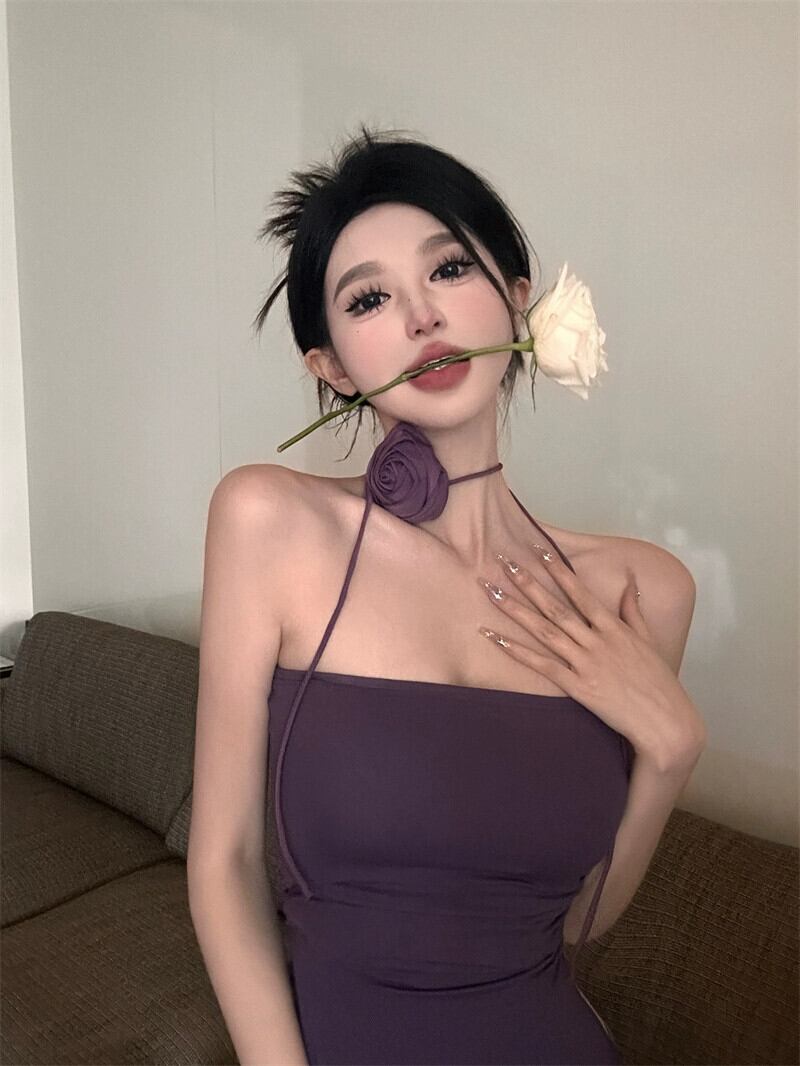 ホットパープルフラワーハンギングネックキャミソール女性の夏のインナー胸パッド自己修養不規則なチューブトップトップアウター サマー 夏物 フラワーデザイン bstraw6942616461 | beaute25