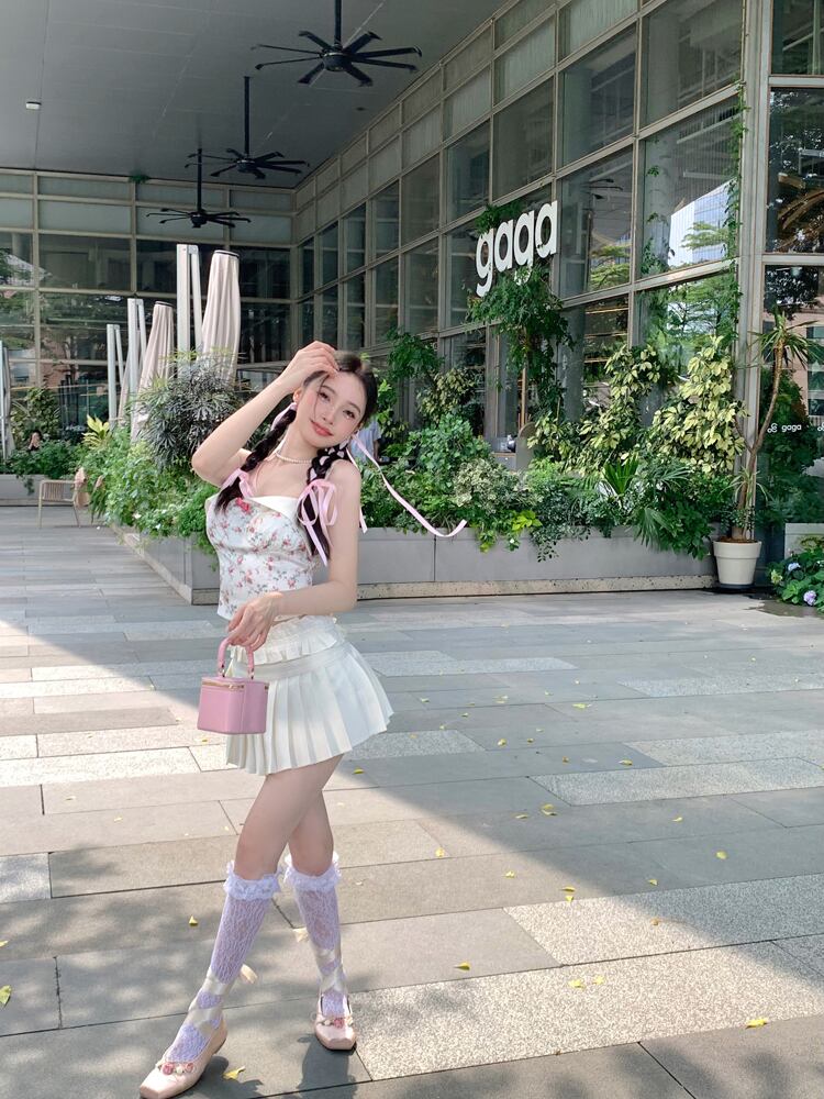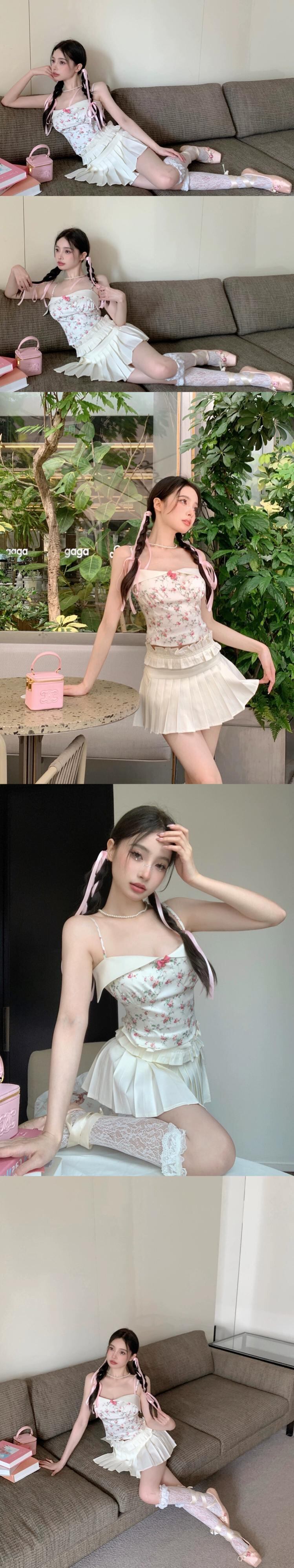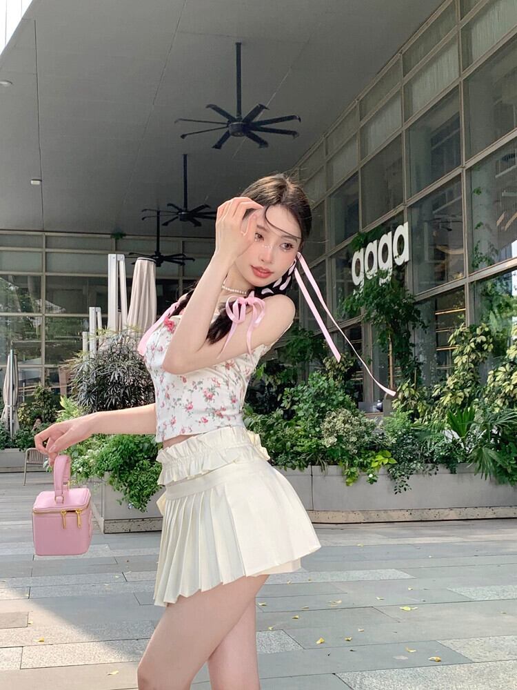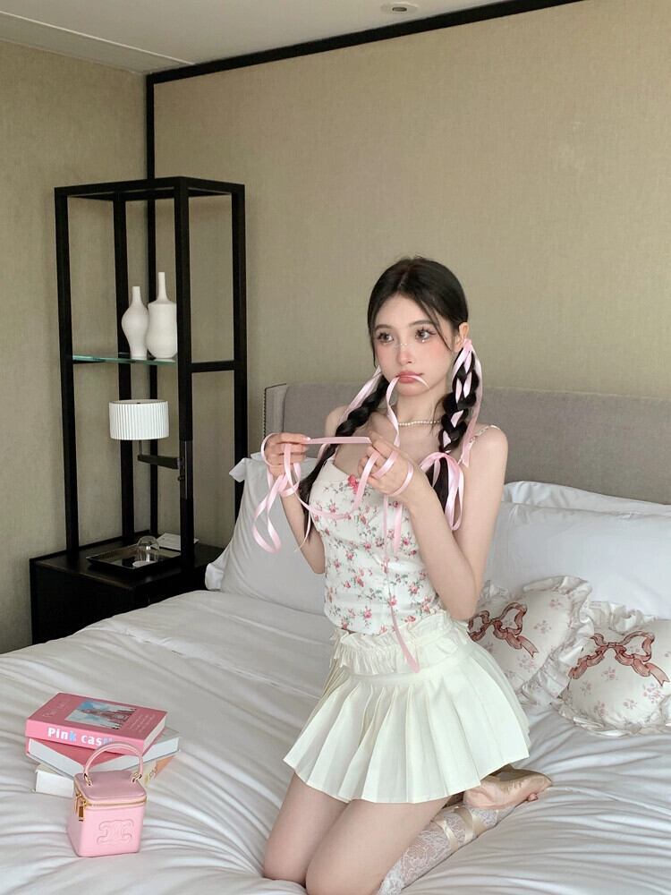 甘い花柄キャミソール女性夏純粋な欲望風ピンクリボンショートショートインナートップ 大人ガーリー スウィート キュート カジュアル サマー 夏物 ピュア bstraw62908725854 | beaute25