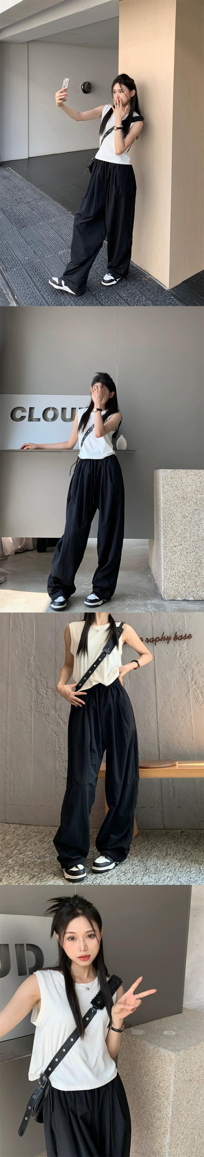 弾性ウエストドレープカジュアルパンツレディース夏薄セクションオールマッチ速乾性スポーツ小さなルーズワイドレッグパンツズボン エラスティック 伸縮 サマー 夏物 bstraw3564576537 | beaute25