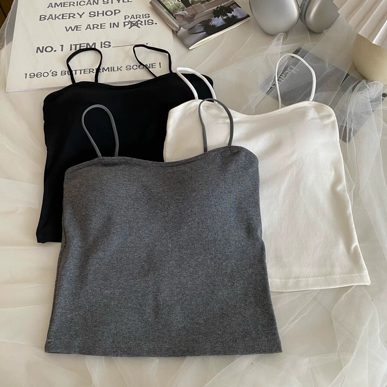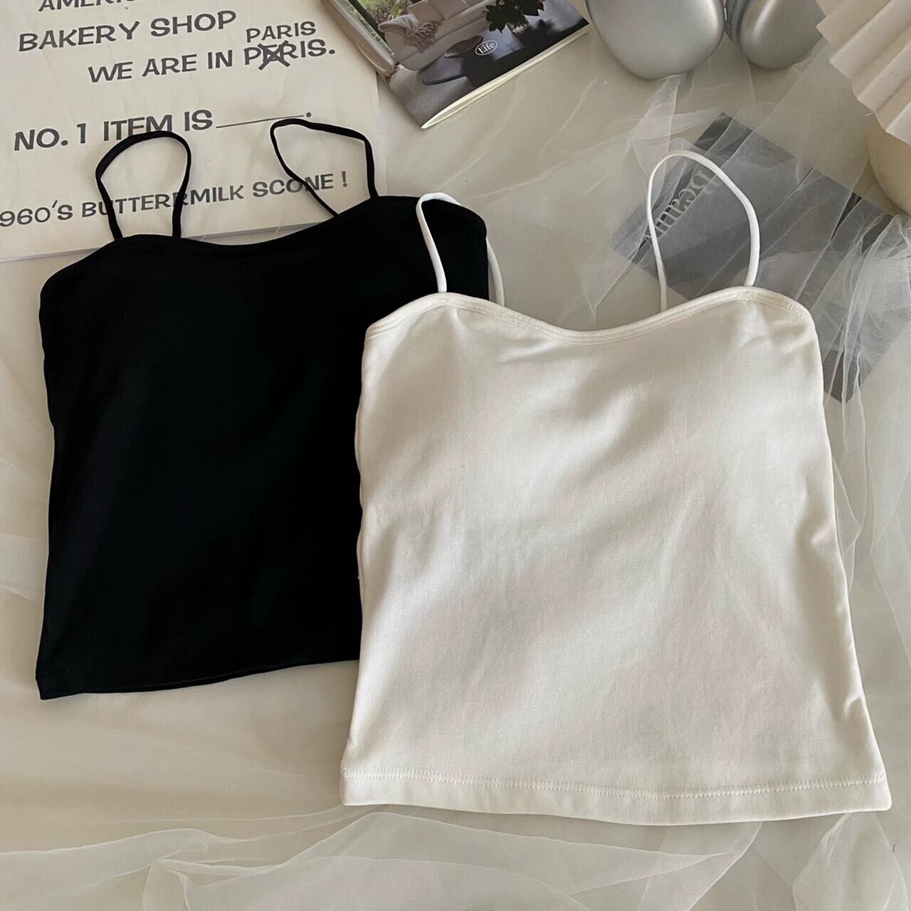 胸パッド一体型のショートスタイルの白い小さなサスペンダートップ女性は、夏に甘いセクシーな純粋なベストを着ます ホワイト 大人ガーリー スウィート キュート カジュアル サマー 夏物 ピュア bstraw48298505583 | beaute25