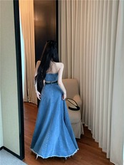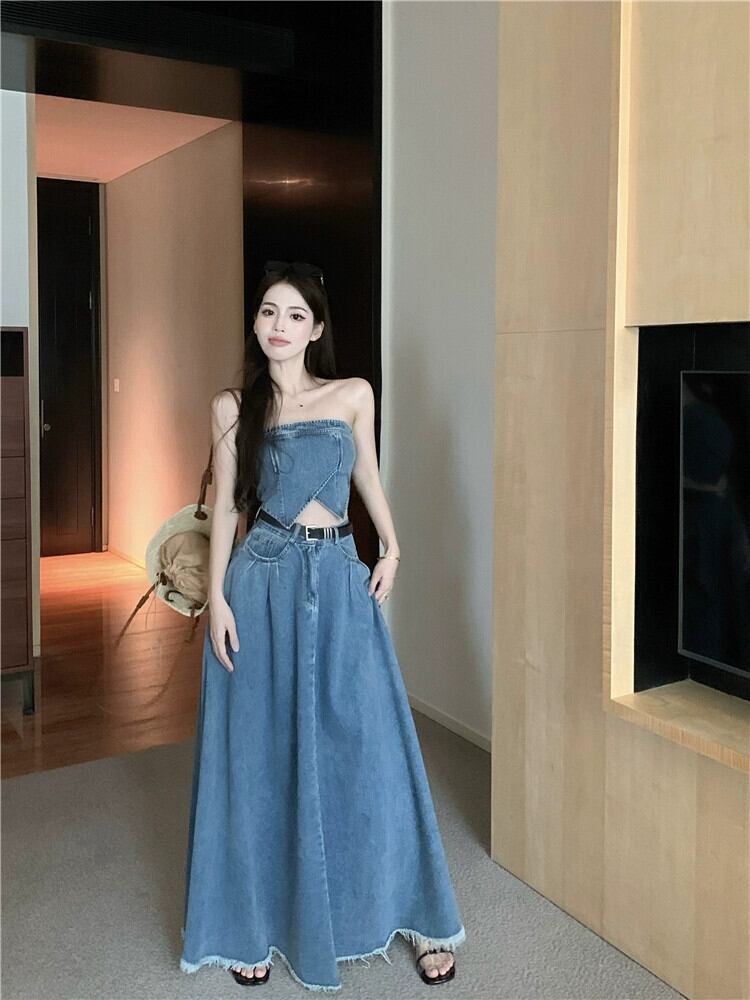Sweet Spice Girls デニムスーツ Pure Desire スタイル チューブトップ ベスト トップ レディース サマースカート ロングスカート スカート 2点セット 大人ガーリー スウィート キュート カジュアル 夏物 ピュア bstraw85783661444 | beaute25