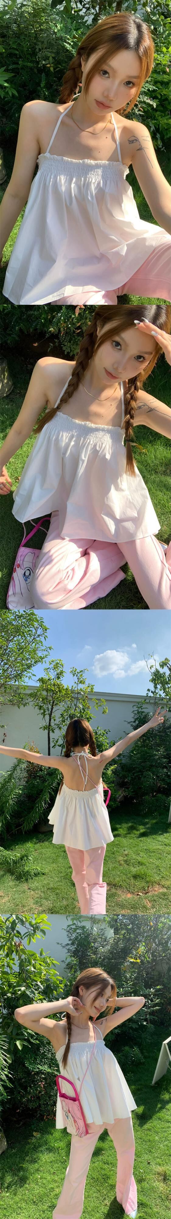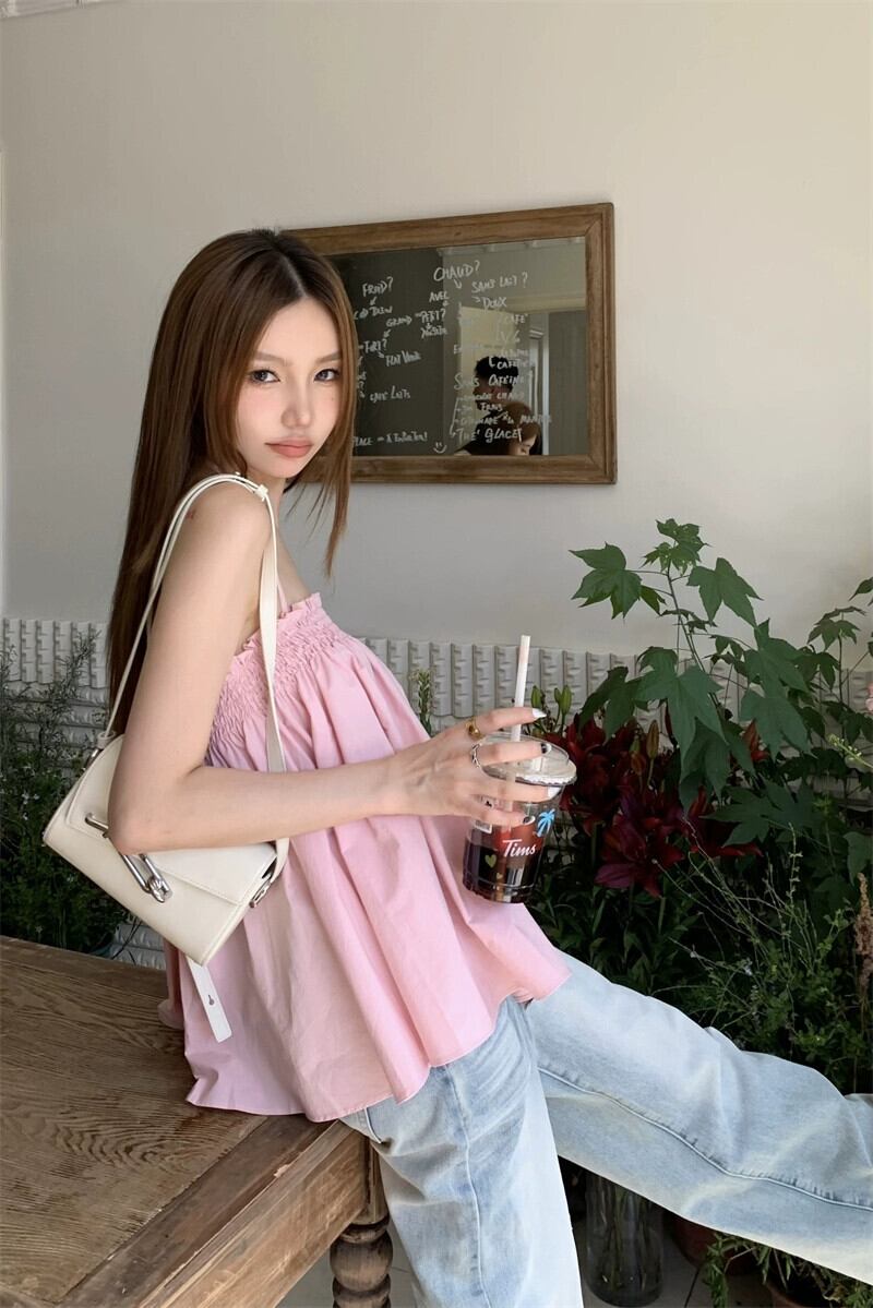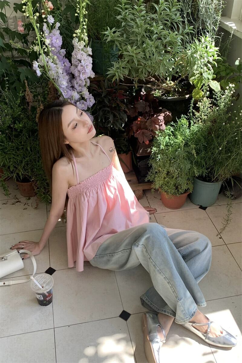 甘い気質ピンクぶら下げネックキャミソール女性の夏ルーズノースリーブバックレスショートドールシャツトップアウター 大人ガーリー スウィート キュート カジュアル サマー 夏物 bstraw94202572906 | beaute25