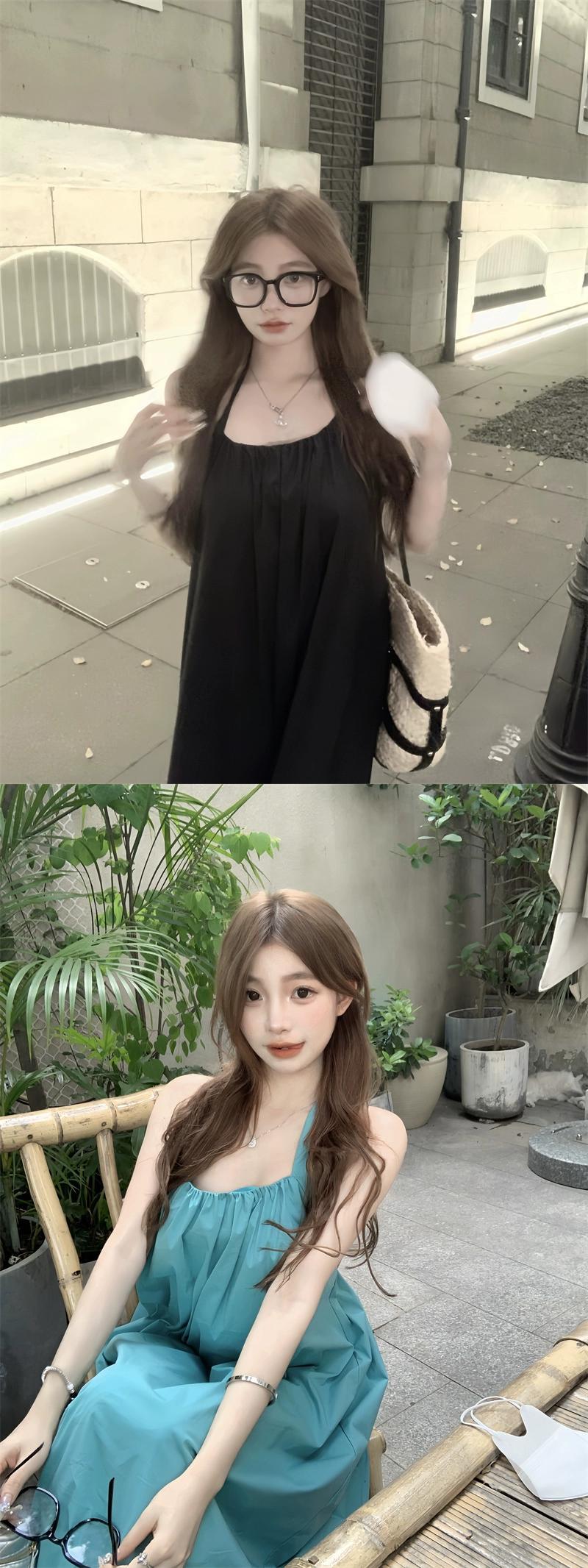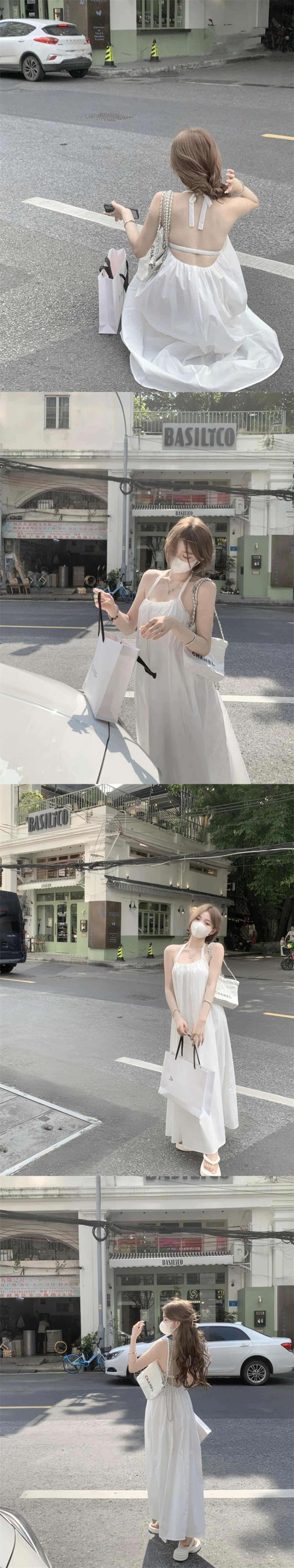 フランスのセクシーな背中の開いたホルターネックストラップドレス女性の夏のノースリーブルーズロングスカート気質シーサイドaラインスカート サマー 夏物 bstraw90531733060 | beaute25