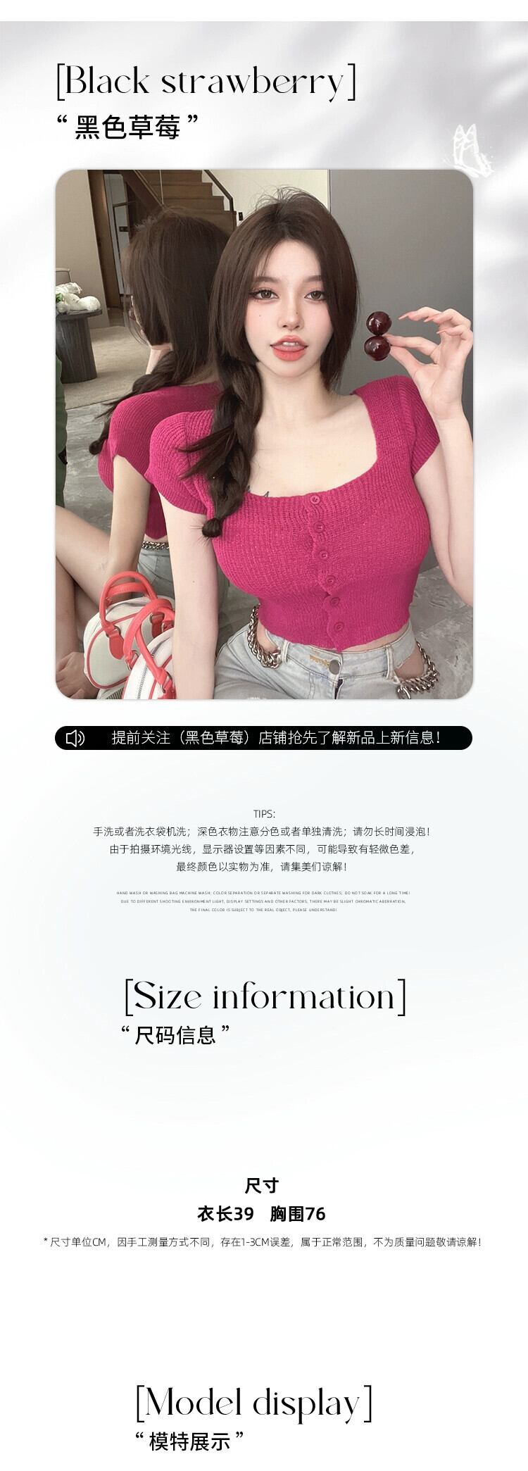 グリーンドーパミン着用半袖 T シャツニットウェア女性の夏の自己修養甘いスクエアカラーショート純粋な欲望のトップ 大人ガーリー スウィート キュート カジュアル サマー 夏物 Tシャツ ピュア スクウェア bstraw38008013106 | beaute25