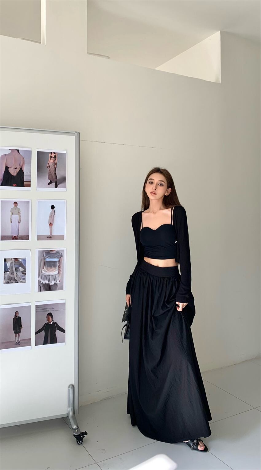 色:ブラックカーディガン,白いカーディガン,ブラックサスペンダー,ホワイトサスペンダー,黒スカート,白いスカート