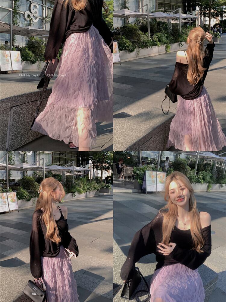 スイートパープルスカートレディース夏ハイウエストスリムガーゼスカート気質ミドル丈スカート小さなハーフスカートaラインスカート ハイウェスト 大人ガーリー スウィート キュート カジュアル サマー 夏物 bstraw69000545137 | beaute25