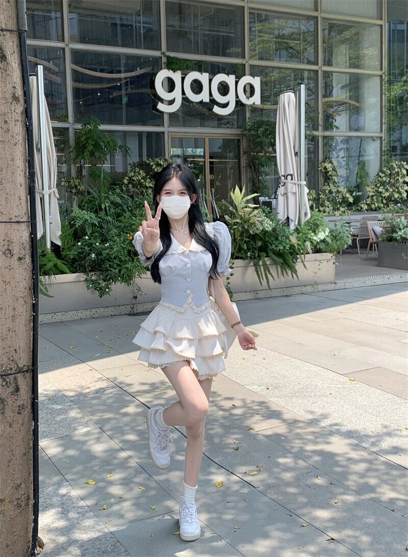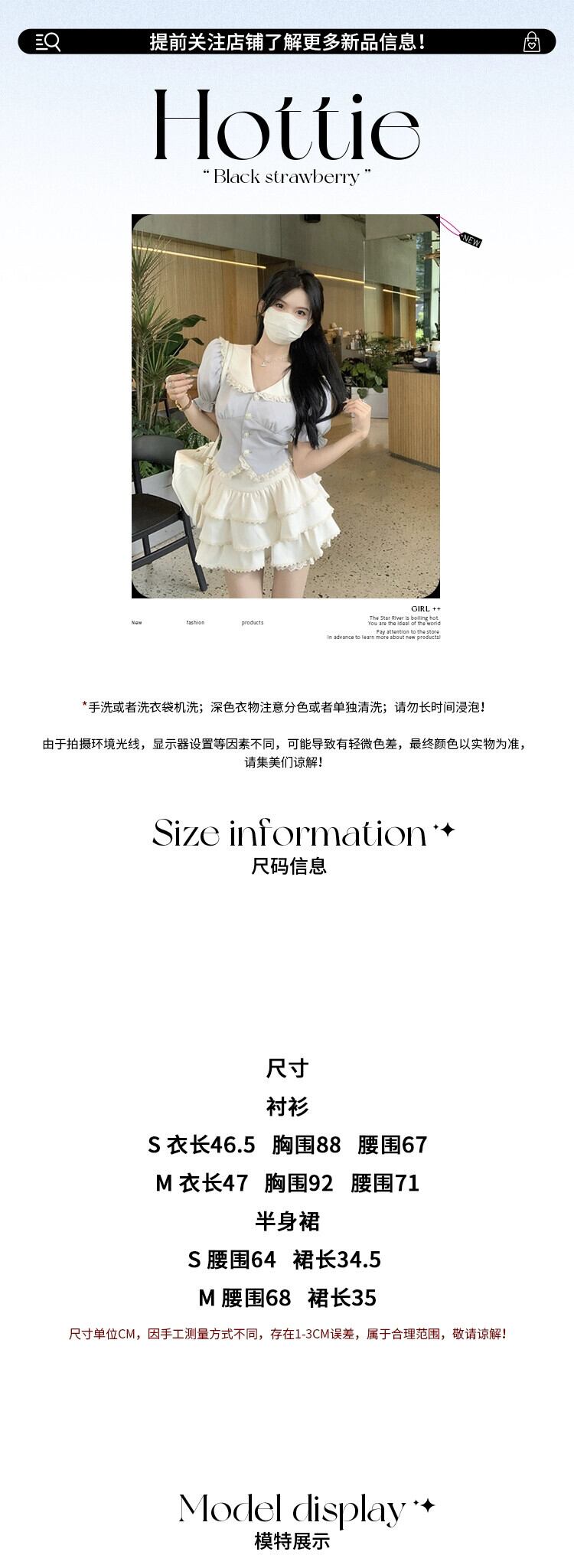 Sweet Spice Girls プレッピースタイルスーツ 半袖シャツトップ レディース サマースカート パフスカート スカート 2点セット ショート ハーフスリーブ 大人ガーリー スウィート キュート カジュアル 夏物 bstraw37878248530 | beaute25