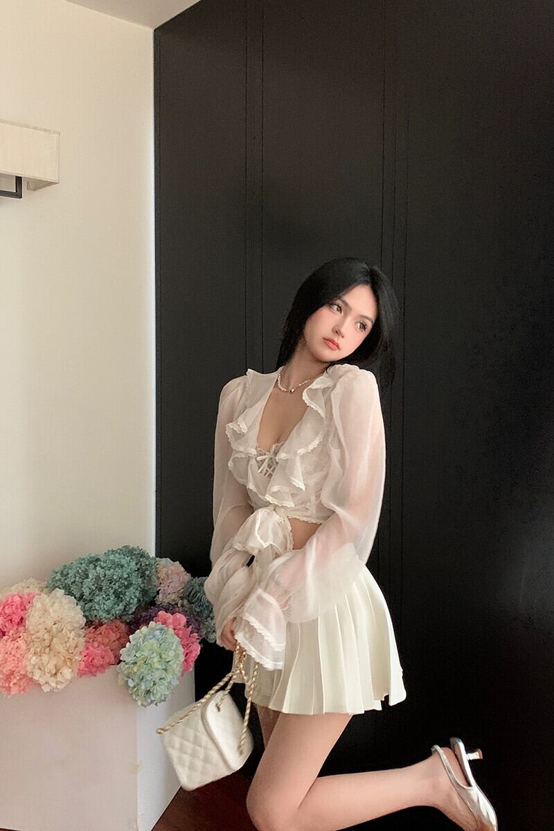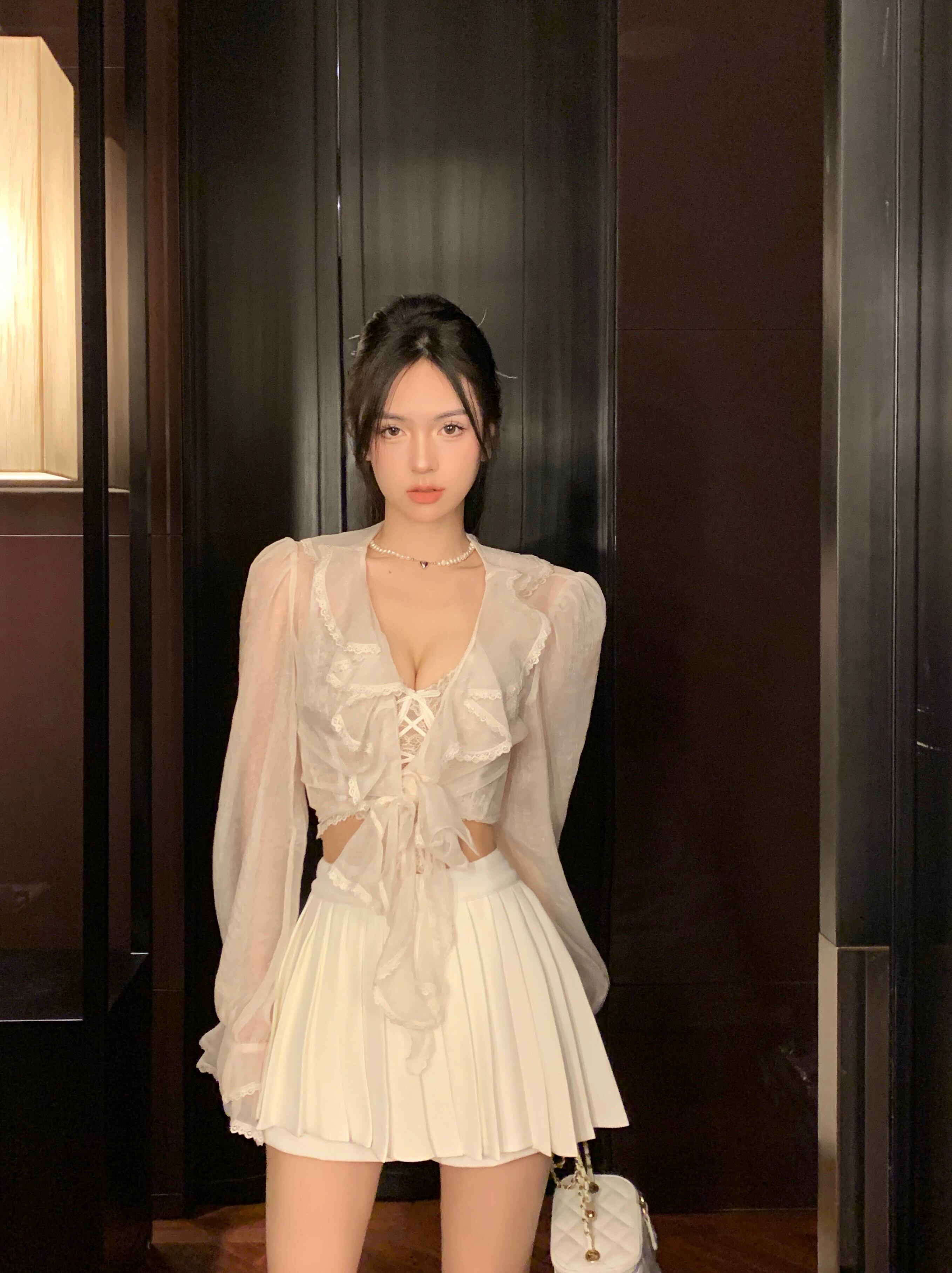 スイート スパイス ガール V ネックシフォンシャツ女性の夏の薄部透視レース日焼け止めカーディガンショートトップジャケット 大人ガーリー スウィート キュート カジュアル サマー 夏物 Vネック bstraw71417807394 | beaute25