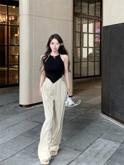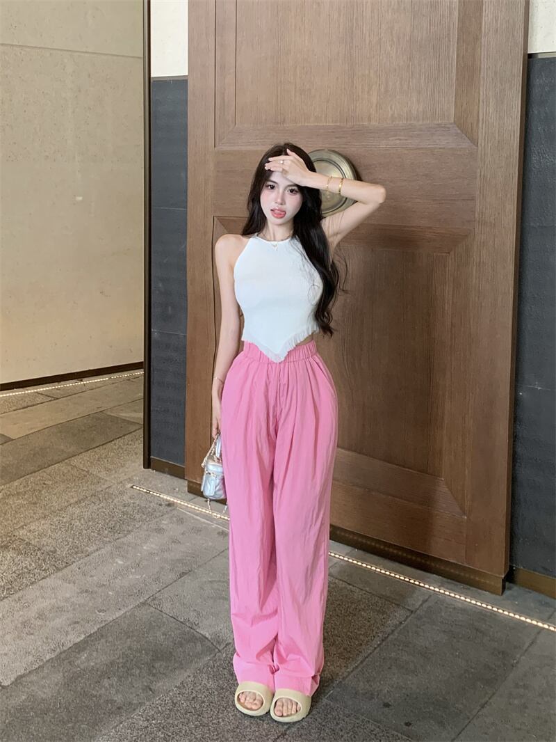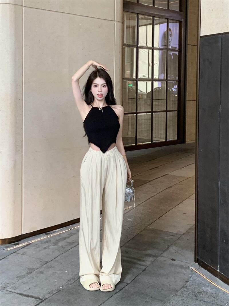 怠惰なスタイルアプリコットカジュアルパンツ女性の夏の薄いセクションルーズストレートレッグスリムパンツハイウエストワイドレッグモップパンツ ハイウェスト サマー 夏物 ワイドパンツ bstraw54656273977 | beaute25