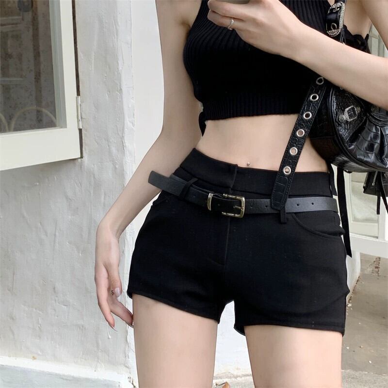 黒ハイウエスト小さなカジュアルショーツ女性の夏のアメリカンセクシーなパンツスリムストレートワイドレッグパンツ ハイウェスト ブラック サマー 夏物 ブルマー ワイドパンツ bstraw40218985496 | beaute25