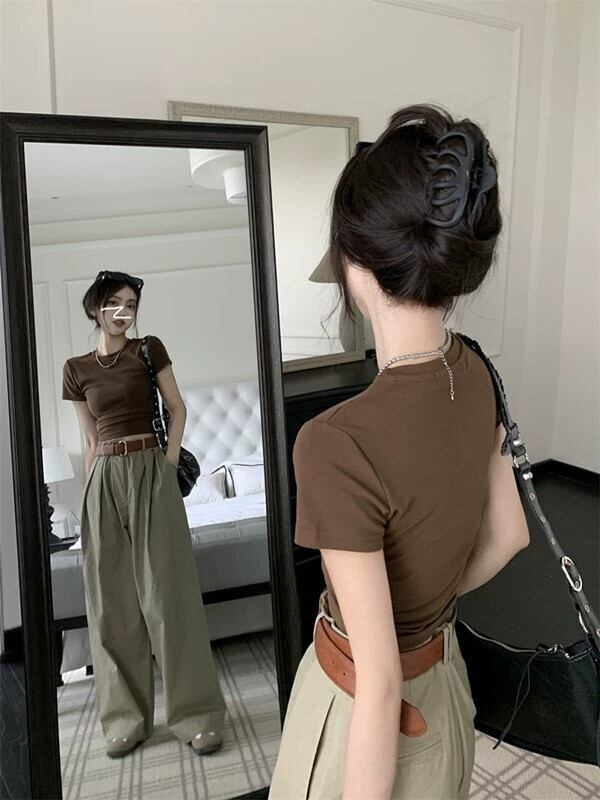 カーキルーズカジュアルパンツ女性の夏の新しいハイウエスト薄いストレートパンツ小男モップワイドレッグパンツ ハイウェスト サマー 夏物 ワイドパンツ bstraw70071875428 | beaute25