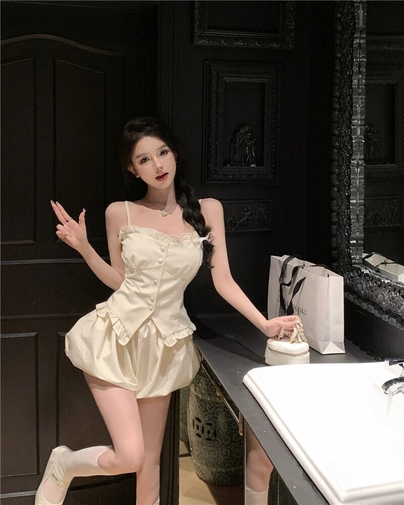 純粋な欲望スタイルスーツ女性レースキャミソールベスト夏ハイウエストルーズカジュアル芽ショーツ 2 点セット ハイウェスト サマー 夏物 ブルマー bstraw11962229844 | beaute25