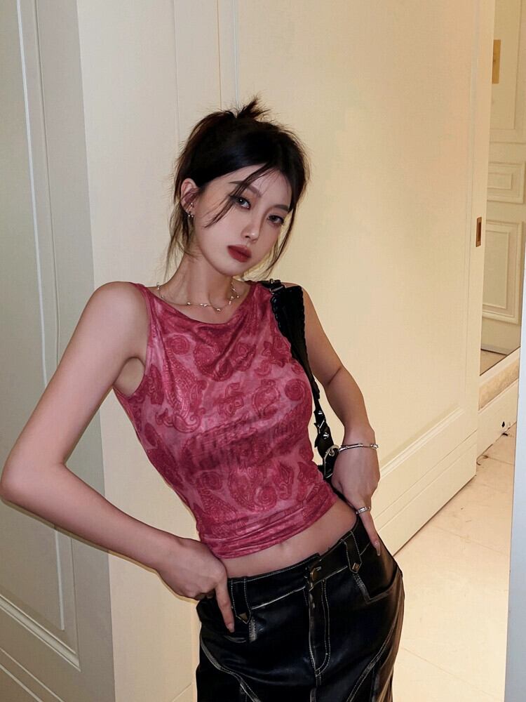 Sweet Spice Girl キャミソール レディース 夏 ピュアディザイア I字型 背中開き タイト セクシー プリント インナーボトム トップ アウター 大人ガーリー スウィート キュート カジュアル サマー 夏物 bstraw20225997962 | beaute25