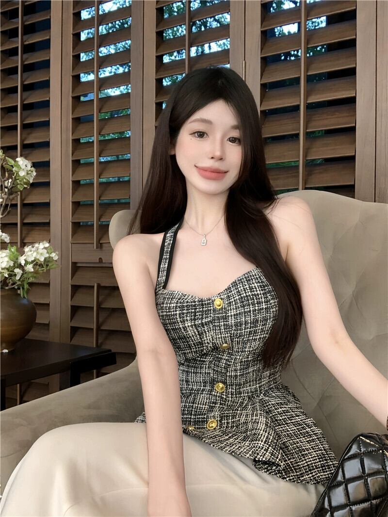 小さな香りの風織りハンギングネックキャミソール女性の夏のウエストインナーウェアノースリーブ甘いクールセクシーなアウターウェアトップ 大人ガーリー スウィート キュート カジュアル サマー 夏物 bstraw83829503593 | beaute25