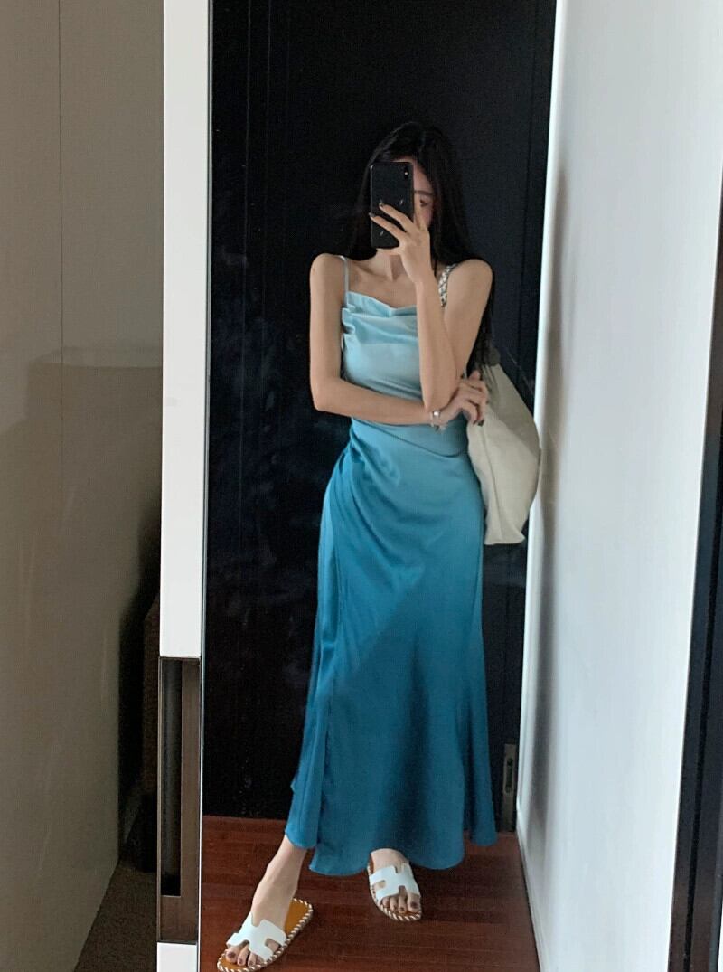 純粋な欲望風サスペンダードレスの女性の夏の 2023 新しいスカートグラデーションカラーノースリーブハイエンド気質シーズンミッドレングススカート サマー 夏物 bstraw36034056533 | beaute25