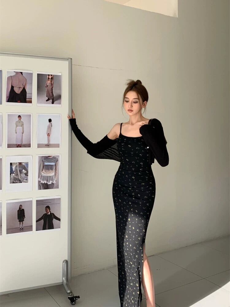 フランスのセクシーな黒花柄スリットサスペンダードレス女性の夏のウエストバッグヒップロングスカート気質バックレススカート ブラック サマー 夏物 bstraw56573230753 | beaute25