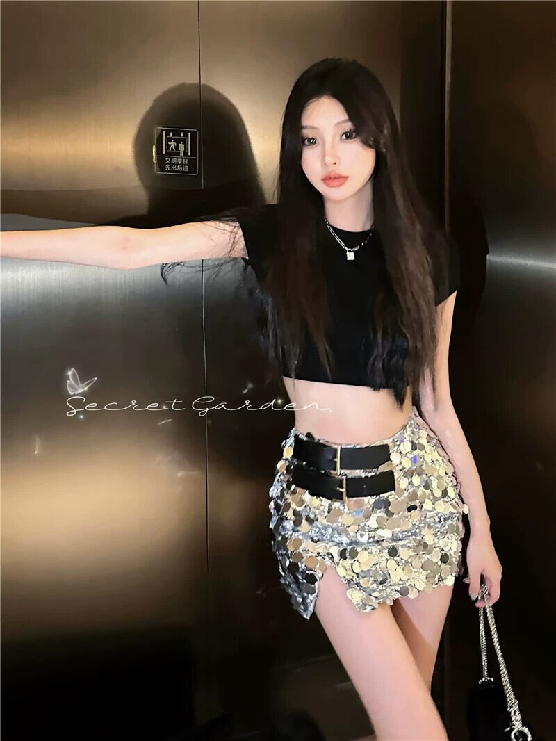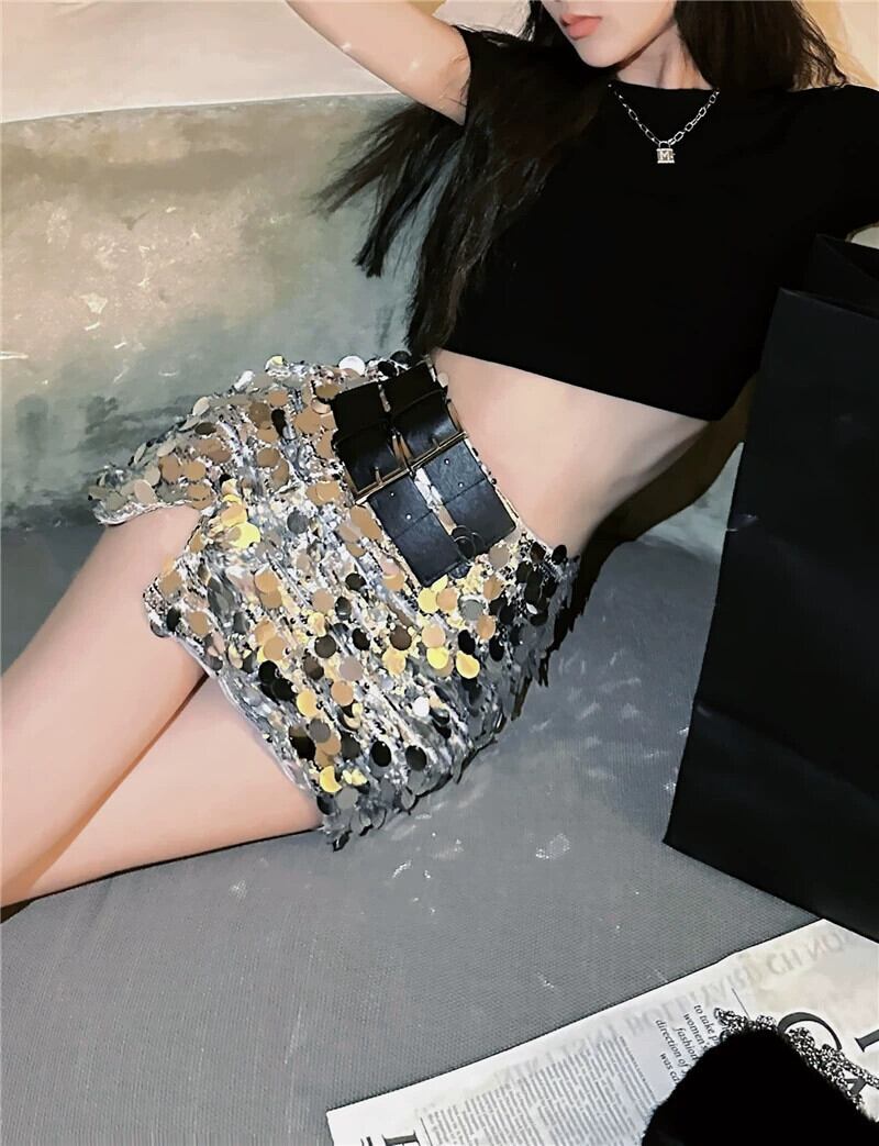 スパンコール裏地付きスカート レディース 夏 デザインセンス ニッチ Aラインスカート ハイウエスト ファッション スリットバッグ ヒップスカート ハイウェスト サマー 夏物 bstraw7370454317 | beaute25