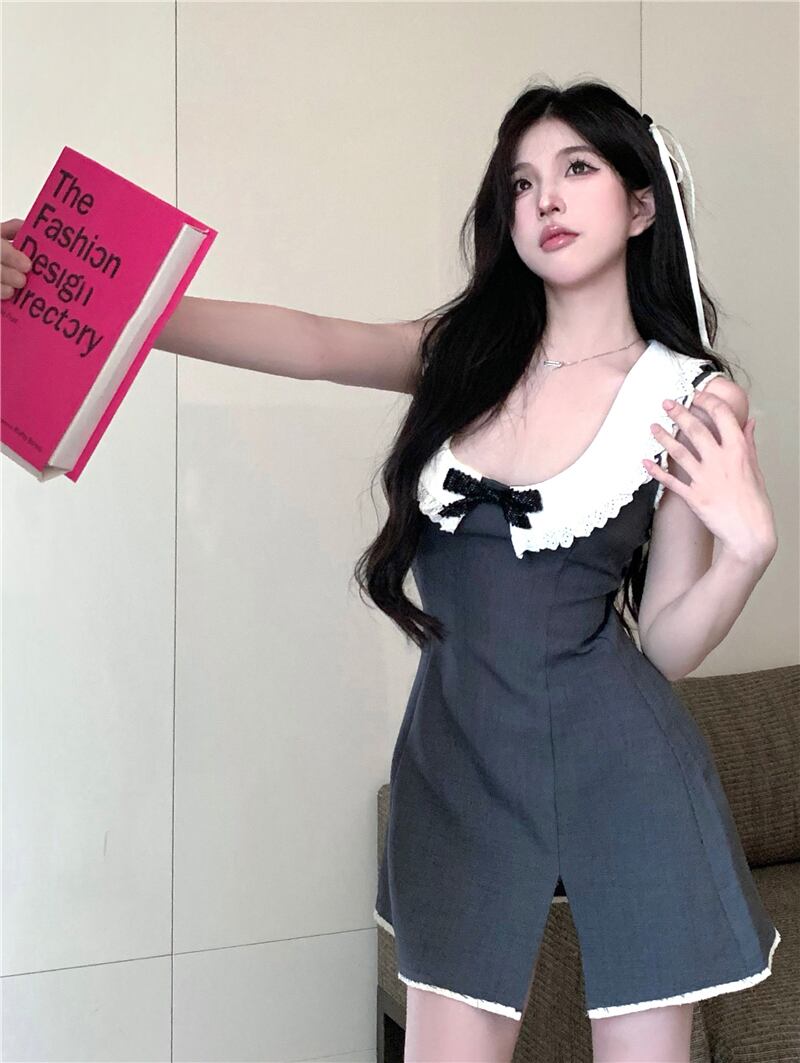 スイートリボンフリルベストドレスレディースサマードールカラースカートスリット気質ウエストスカート 大人ガーリー スウィート キュート カジュアル 夏物 bstraw74217387323 | beaute25