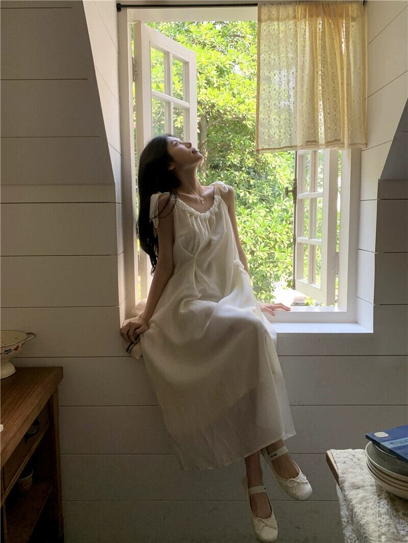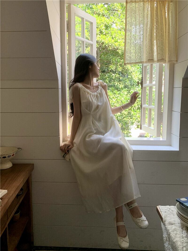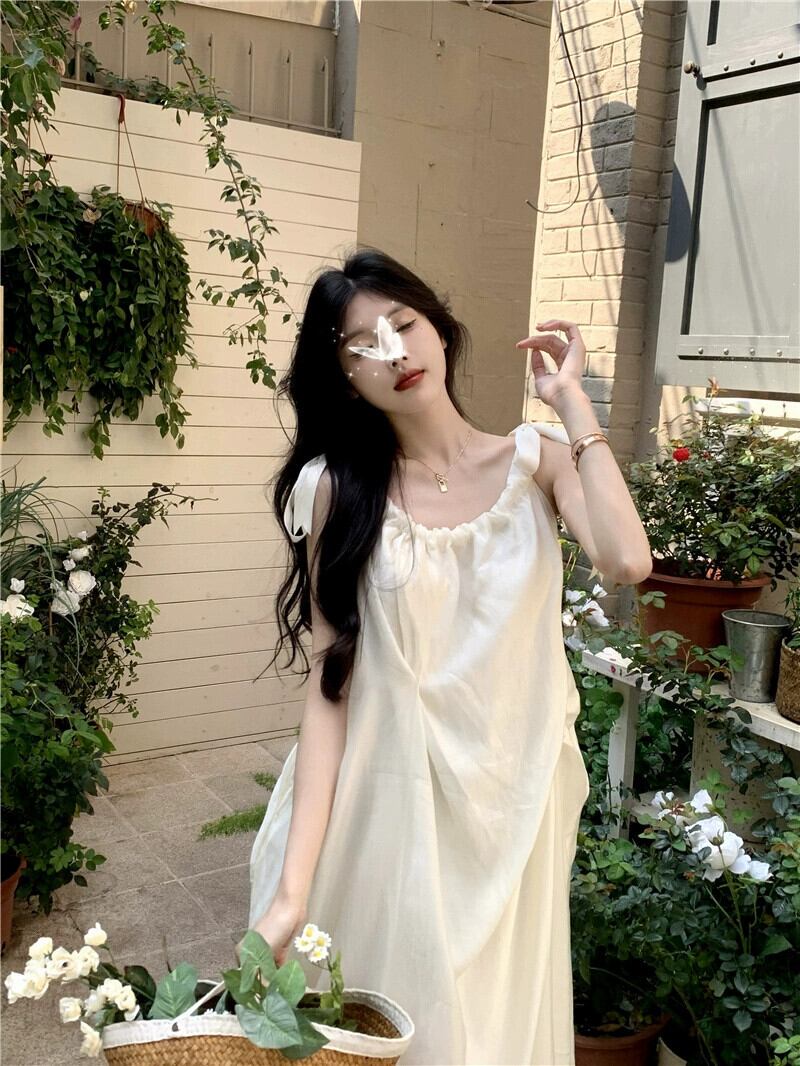 甘くて優しいシフォンノースリーブドレス妖精夏怠惰な風スカート海辺の気質ハイエンドミドル丈スカート 大人ガーリー スウィート キュート カジュアル サマー 夏物 bstraw93804638441 | beaute25