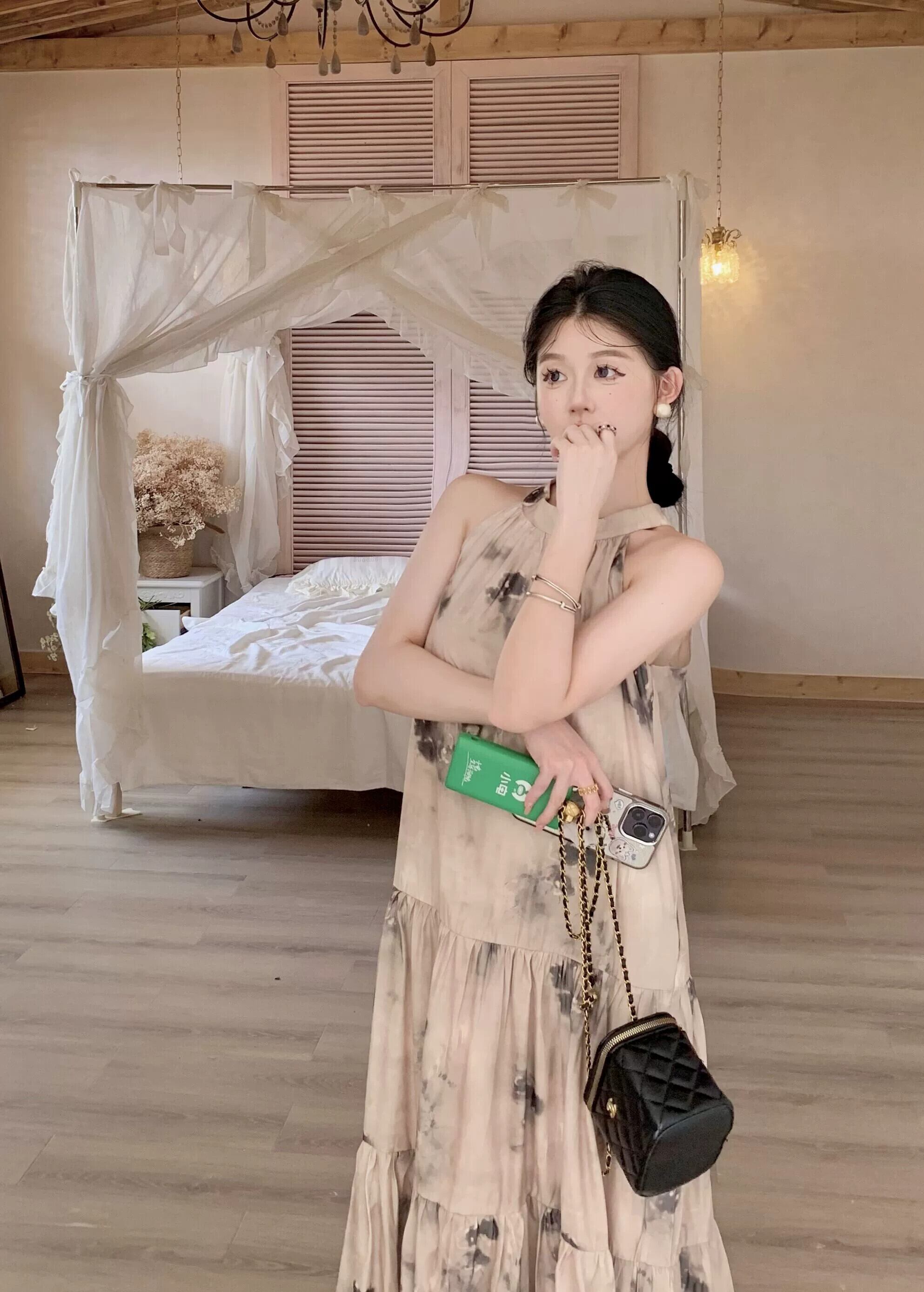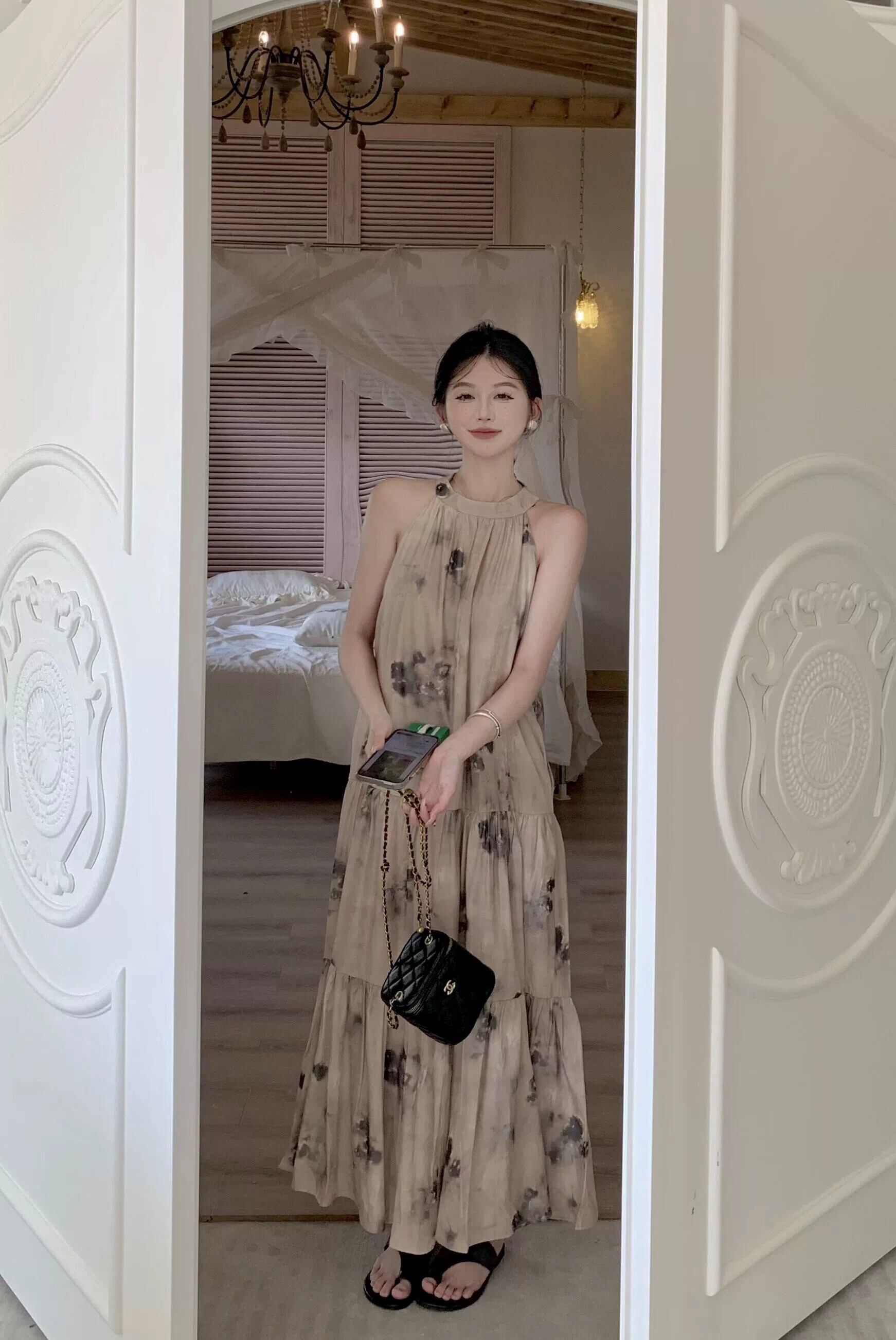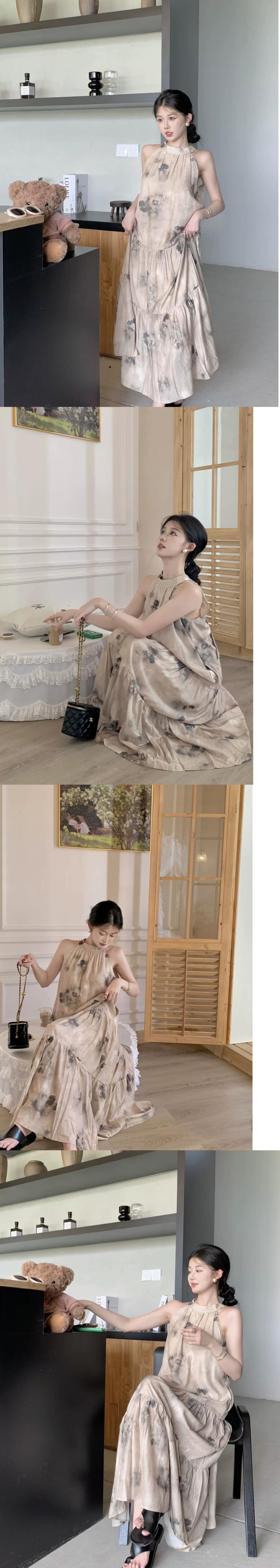 フレンチフローラルホルターネックドレス女性の夏のストラップレスボウノット気質ティーブレイクスカートルーズAラインロングドレス リボン サマー 夏物 花柄 bstraw85474031979 | beaute25