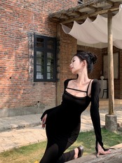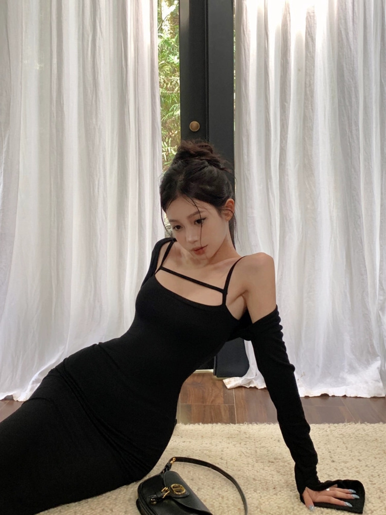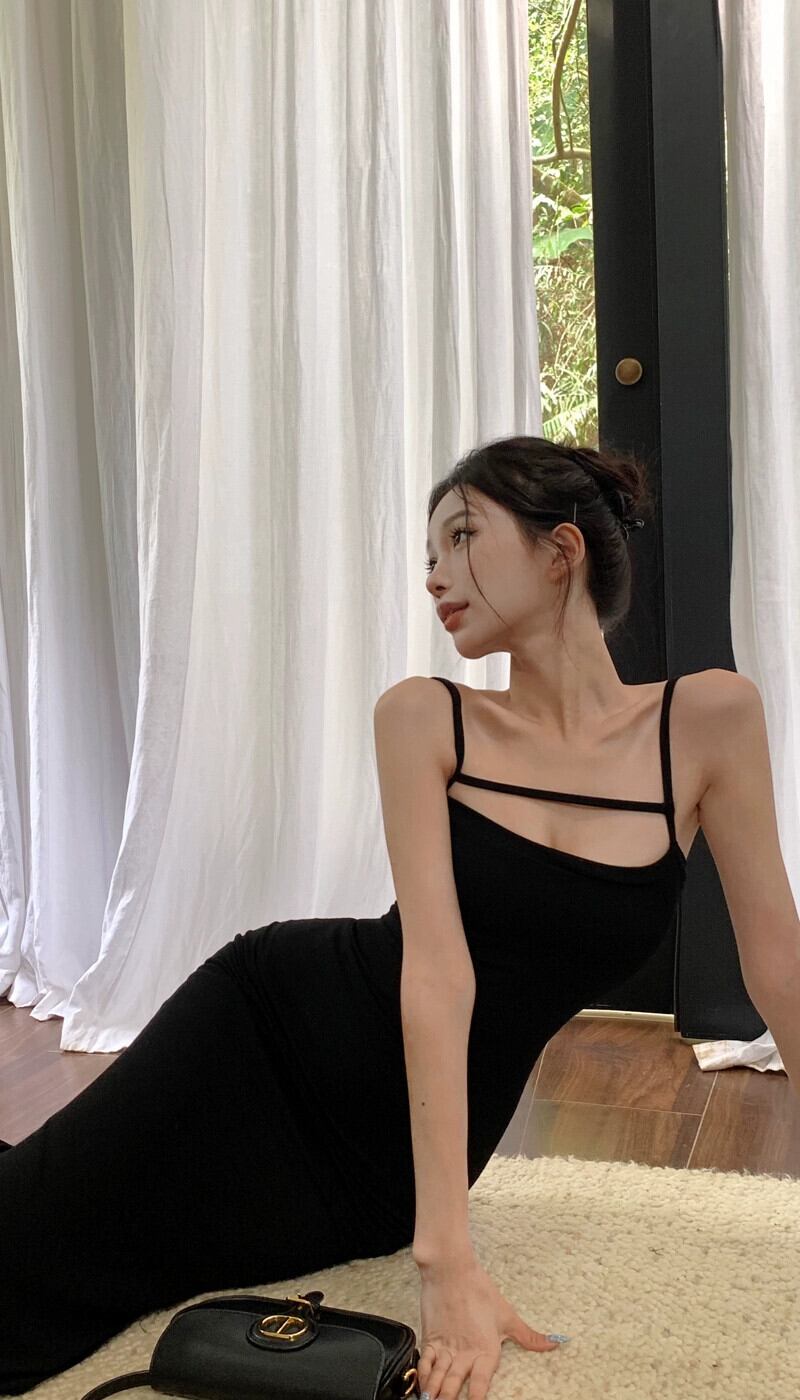 黒サスペンダードレスの女性の夏の 2023 新しい純粋な欲望風スカートウエスト痩身スリムフィッシュテールロングスカート ブラック サマー 夏物 ピュア bstraw85003132190 | beaute25