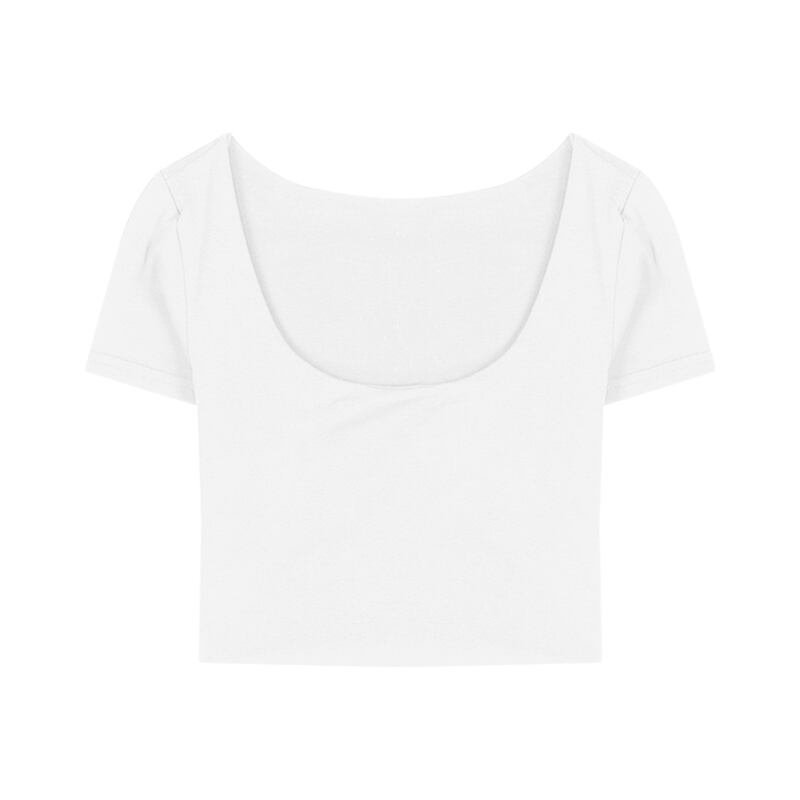 純粋な欲望風スクエアカラー半袖 Tシャツ女性の夏白タイトなハイウエストへそセクシーなスリムショートトップ ハイウェスト ホワイト サマー 夏物 スクウェア bstraw34400954460 | beaute25