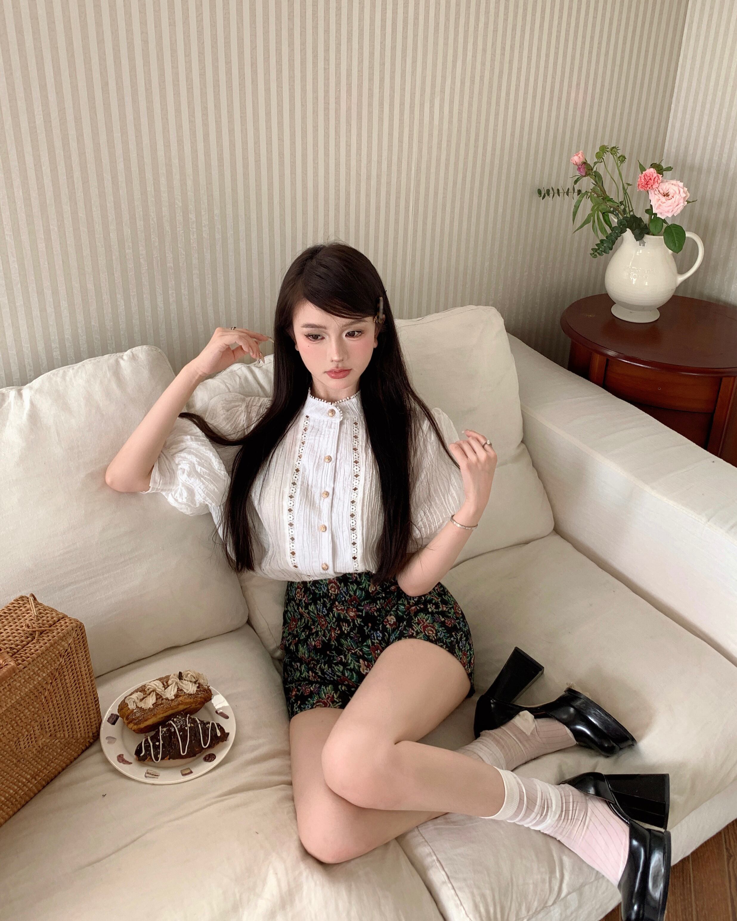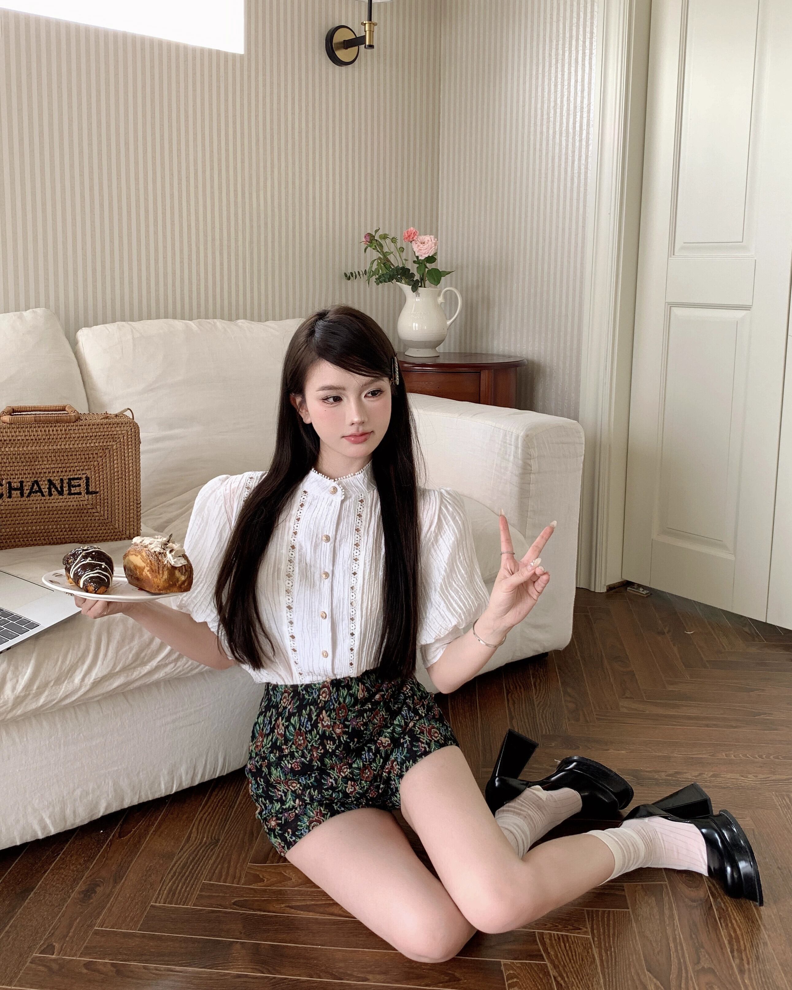 スウィートリトルマンスーツ半袖シャツトップレディース夏ハイウエスト花柄パンツカジュアルショーツ2点セット ハイウェスト 大人ガーリー キュート サマー 夏物 ブルマー bstraw48198306223 | beaute25