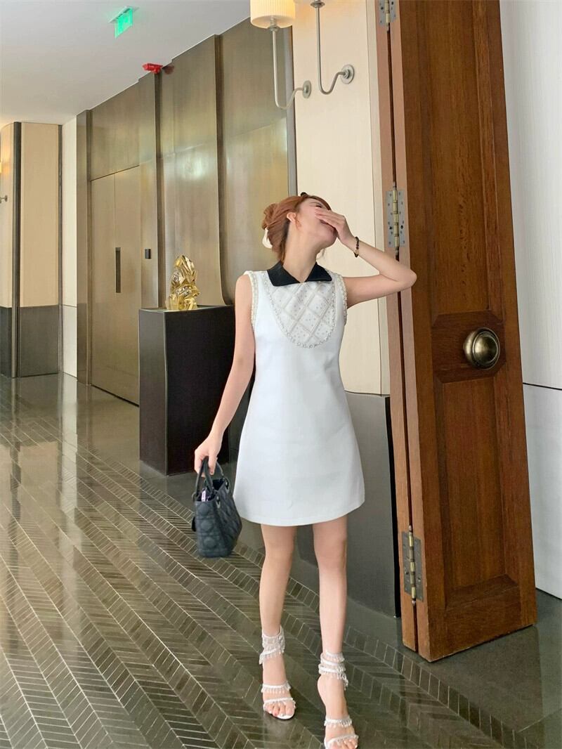 気質セレブ重工業ダイヤモンドがちりばめられた白いベストドレス女性の夏の人形の襟ウエスト痩身 A ラインショートスカート ホワイト サマー 夏物 Aライン bstraw20229829640 | beaute25