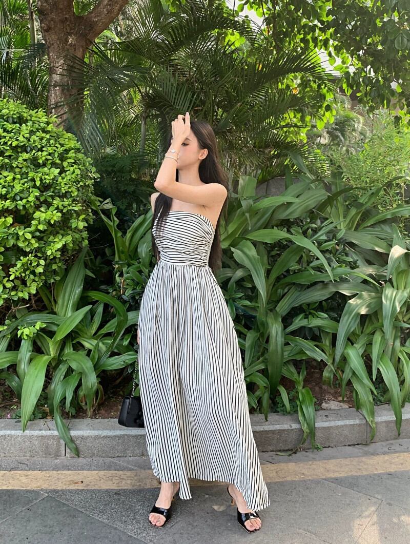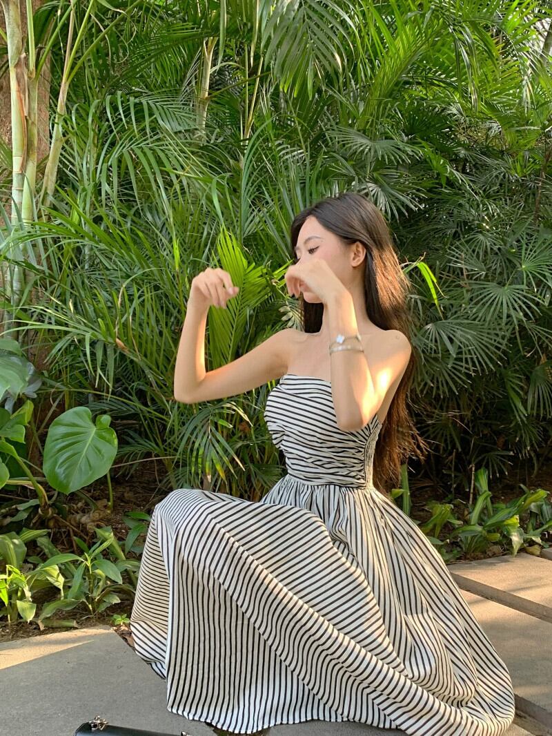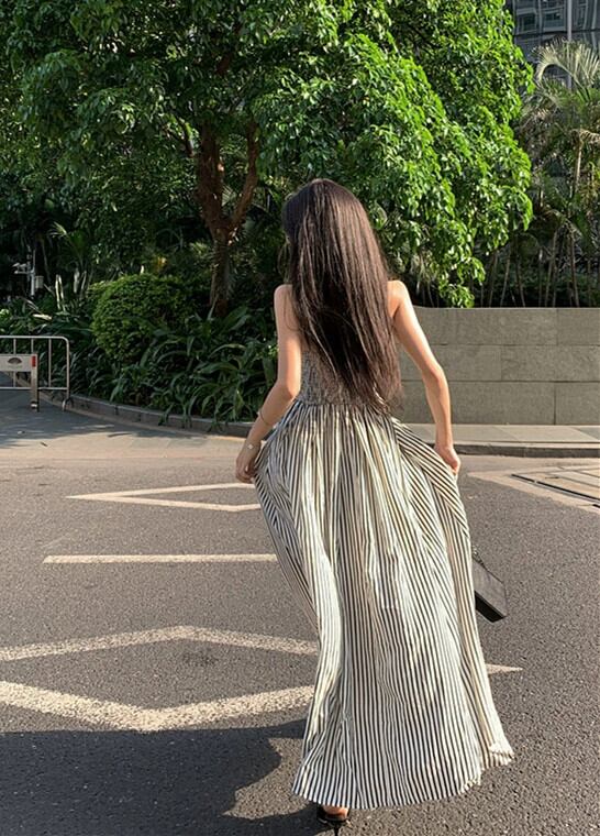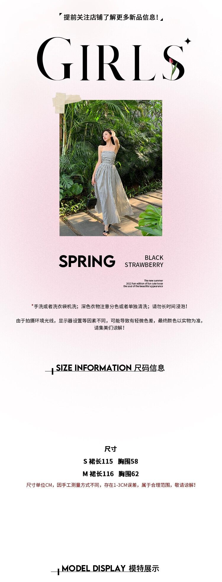 スパイスプリーツ黒と白のストライプのチューブトップドレス女性の夏のウエストハイウエストシーサイドロングスカートオープンバックaラインスカート ハイウェスト ホワイト ブラック サマー 夏物 bstraw47810681056 | beaute25