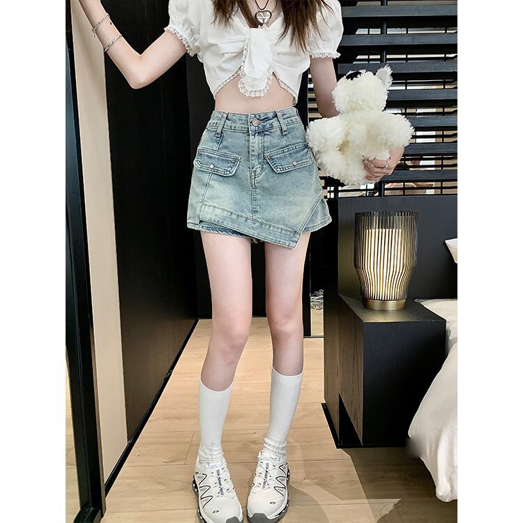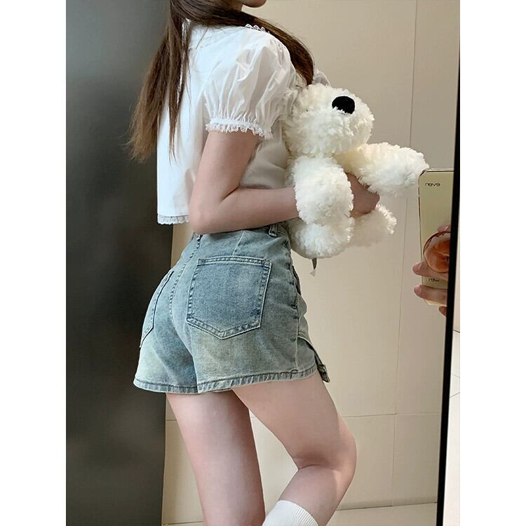 ウエストバッグ ヒップ スリム デニム ショートパンツ レディース 夏 ライトブルー レトロ 袴 アメリカンスタイル Aライン ストレート ワイドパンツ サマー 夏物 ショーツ ブルマー スリムヒップ bstraw11735577987 | beaute25