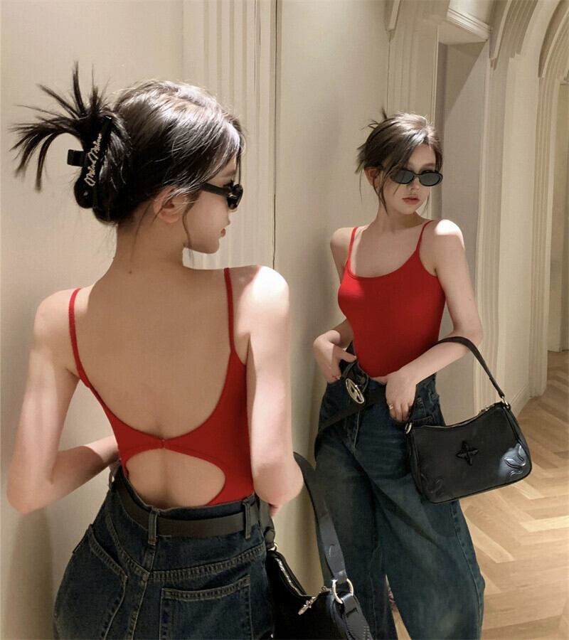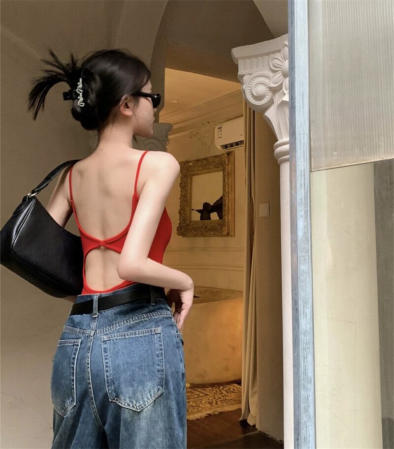 ヨーロッパとアメリカの赤い背中の開いたワンピースキャミソール女性の夏のセクシーなインナーアメリカンショートボトムシャツトップ レッド サマー 夏物 ヨーロピアン bstraw70939228309 | beaute25