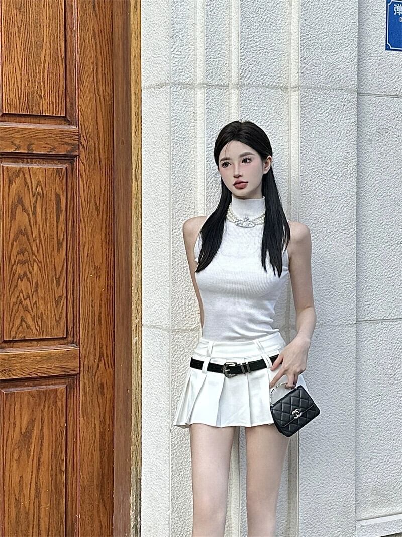 ホワイトハイネックノースリーブベスト女性の夏の 2023 新しい自己修養ボトリングシャツ純粋な欲望タイトフィットアウターウェアトップ サマー 夏物 ピュア bstraw28930205602 | beaute25