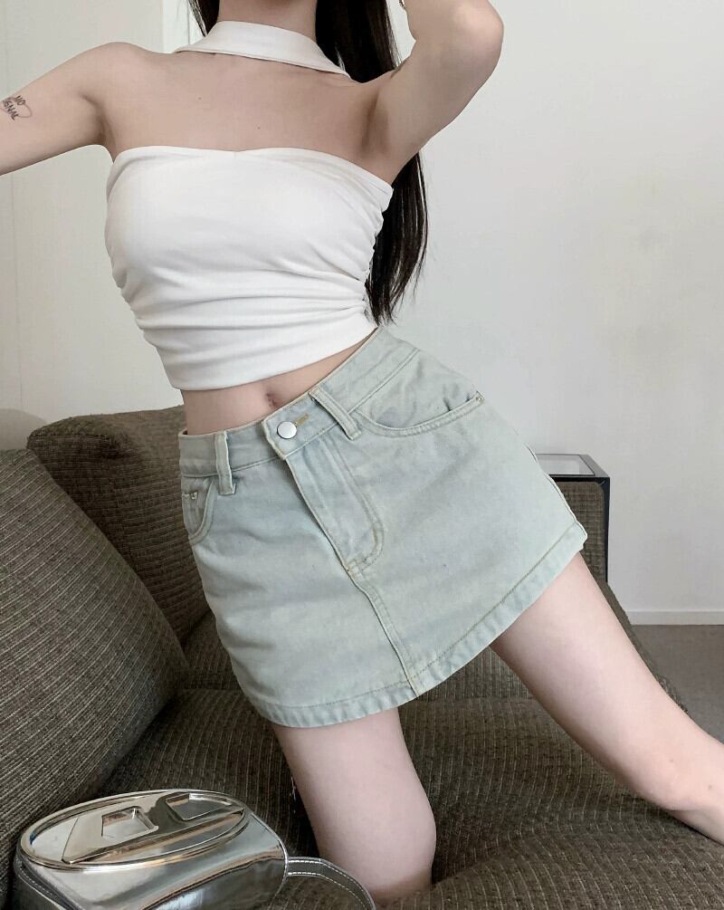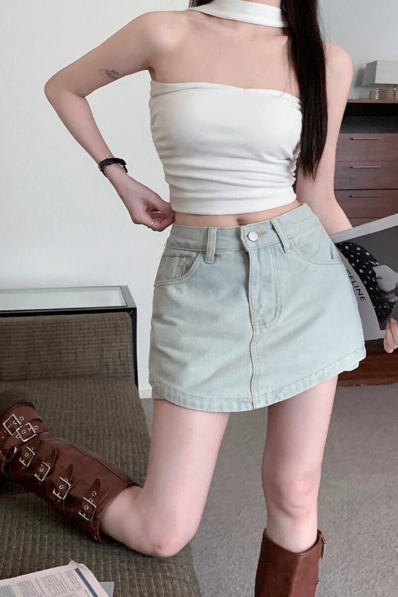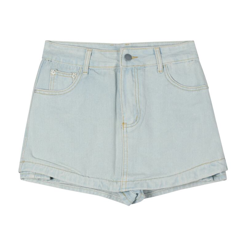 ウォッシュドライトカラーフェイクツーピースキュロットレディース夏ハイウエストデニムスカートアメリカンスタイルAラインスカートバッグヒップスカート ハイウェスト サマー 夏物 bstraw79490963579 | beaute25
