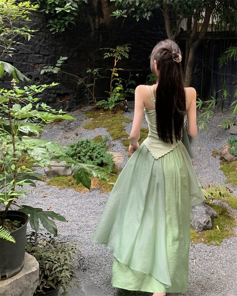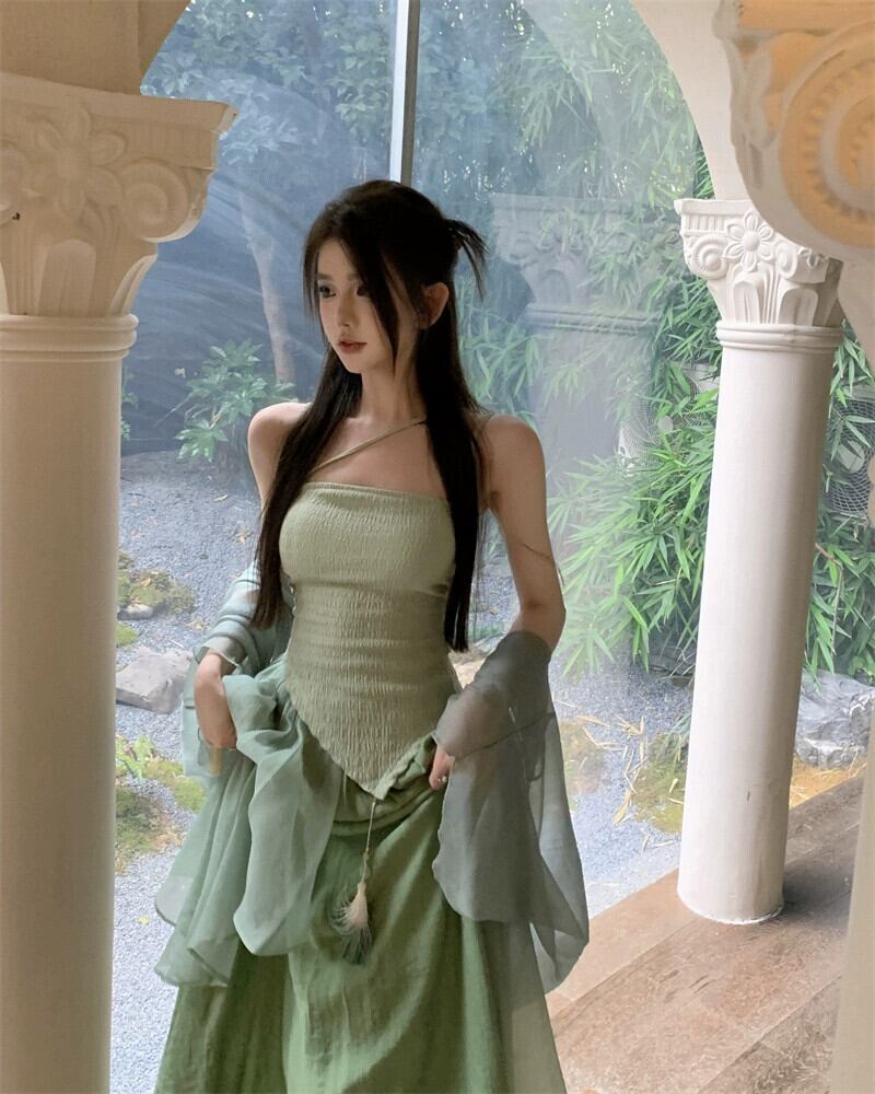 色:グリーンカーディガン,緑のスカート,ペンダントを送るグリーンのチューブトップ