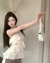 ホルターネックローズリボンノースリーブトップ女性の夏の美しいバック木製耳側甘いスパイシーなストラップスリングフリルベスト 大人ガーリー スウィート キュート カジュアル サマー 夏物 bstraw47126968582 | beaute25