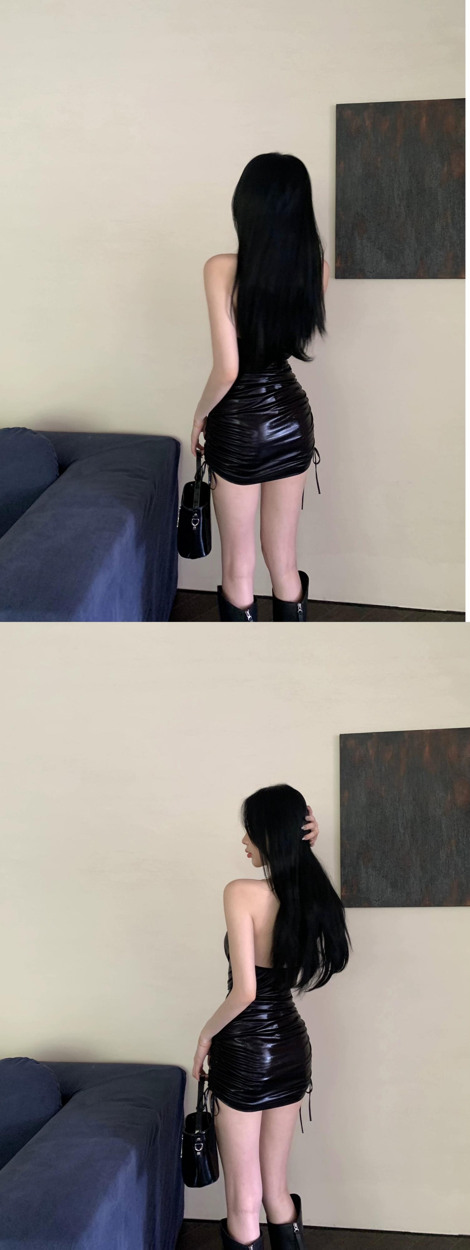 純粋な欲望スタイル黒プリーツホルターネックスリングドレス女性の夏のウエストストラップ露出したバックパックお尻ショートスカート ブラック サマー 夏物 リュック bstraw97119018099 | beaute25