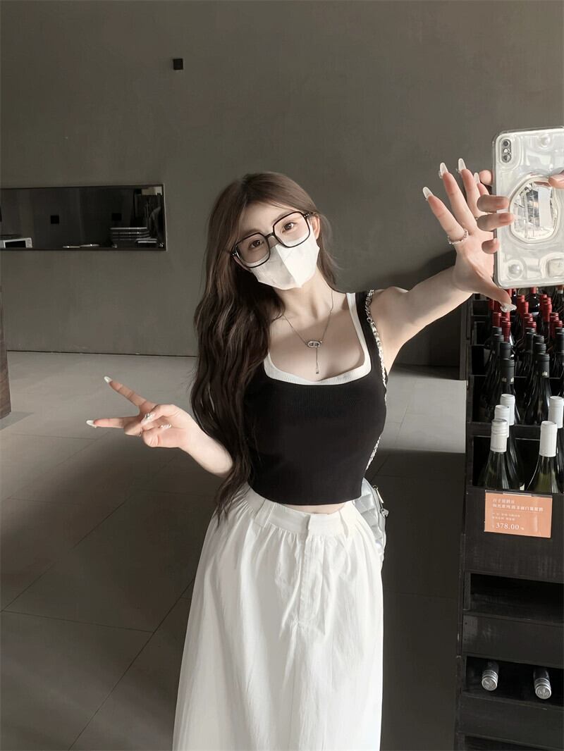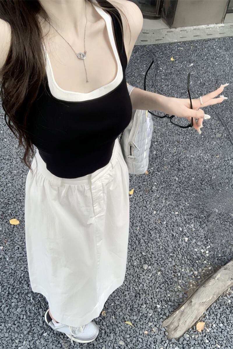 スパイスガールピュアディザイアフェイクツーピーススプライシングキャミソール女性の夏ショートスリムスリムホルターバックレストップ着用アウター サマー 夏物 bstraw87108782759 | beaute25