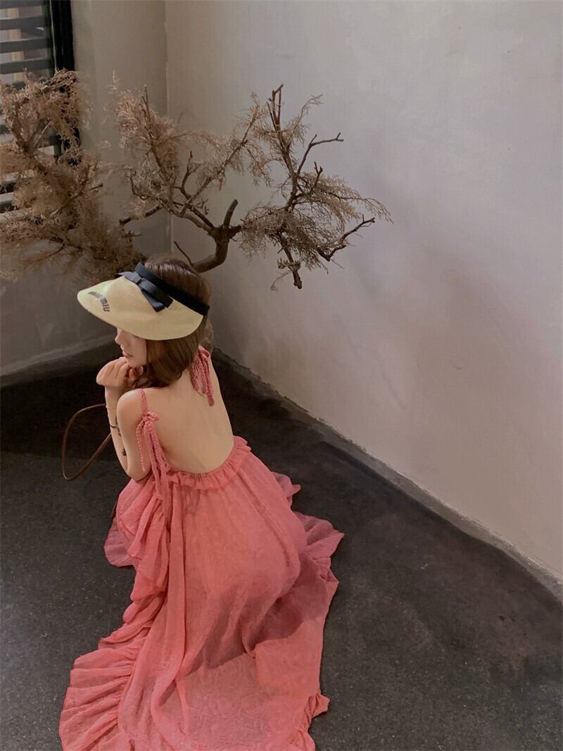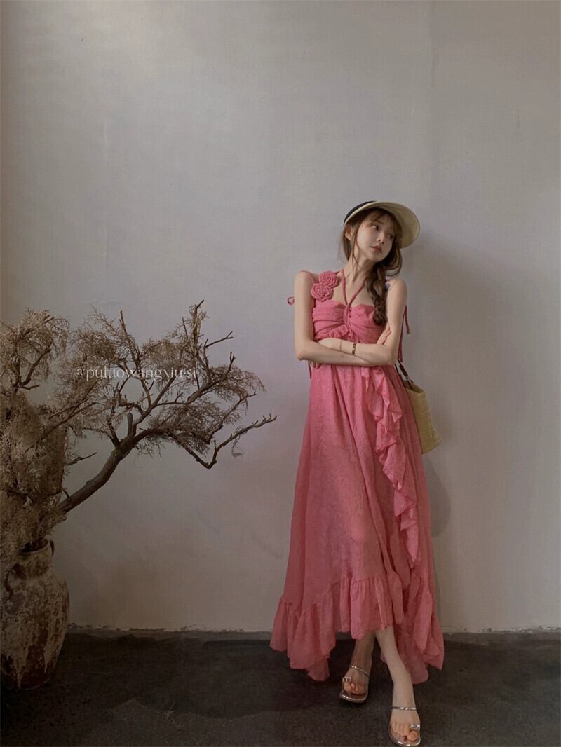 ホリデー立体花ぶら下げネックサスペンダードレス女性の夏のスカート不規則なハイウエスト蓮の葉エッジ気質ロングスカート ハイウェスト サマー 夏物 フラワーデザイン bstraw42544615192 | beaute25