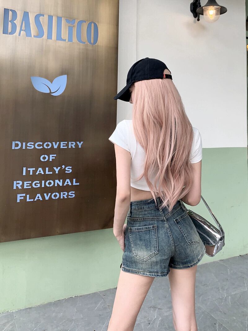 ブルーのセクシーなデニムショートパンツ女性の夏ハイウエストスリムストレッチパンツ小さなストレートスリムフィットヒップパンツ ハイウェスト サマー 夏物 ショーツ ブルマー bstraw46561299784 | beaute25