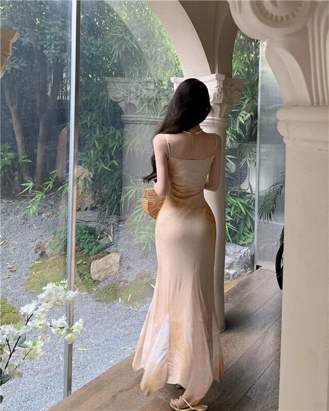 メッシュフィッシュテールサスペンダードレス女性の夏フレンチレトロな気質ロングスカート純粋な欲望セクシーなバックパックヒップスカート サマー 夏物 リュック ピュア bstraw74941947688 | beaute25