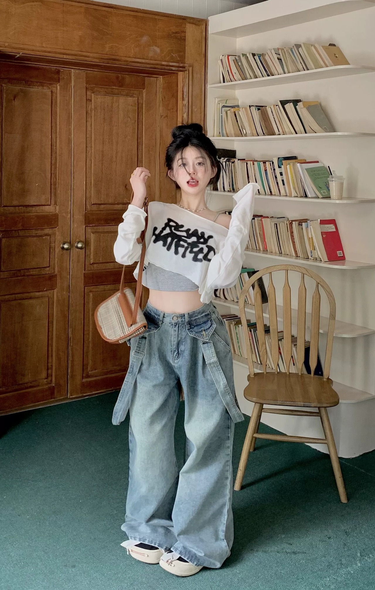 色:グレースリング,白いブラウス